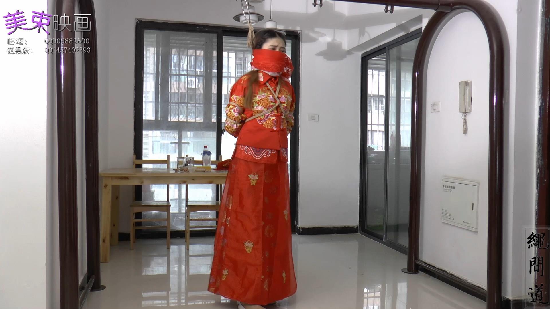 突然很有一种拍摄中式婚礼衣服的想法,因为,想感受一下大红灯笼高高挂的意境,可惜,没有那个场地,所以味道还是差了不少,但是衣服还是尽可能像中式婚典礼服靠拢,绑法是纯中式的五花.新娘坐在床上等待新郎,可惜,新郎被绑架了,绑架者威胁新娘听话,为防止新娘逃跑,手铐,黑色重镣全部用上,来到客厅,该上正题了,那么五花,丝巾堵嘴,多层丝巾堵嘴,恩,感觉看点满满,希望大家喜欢了。