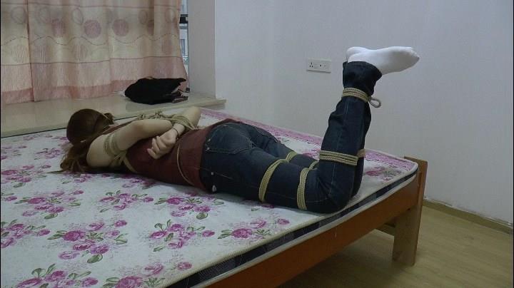 前景回放:张玟莉因贪图小便宜而陷入传销分子老黑的圈套中,被镣铐铐着却准备逃跑,老黑发现,便用绳子紧缚张玟莉,老黑走后,开始了下机的故事