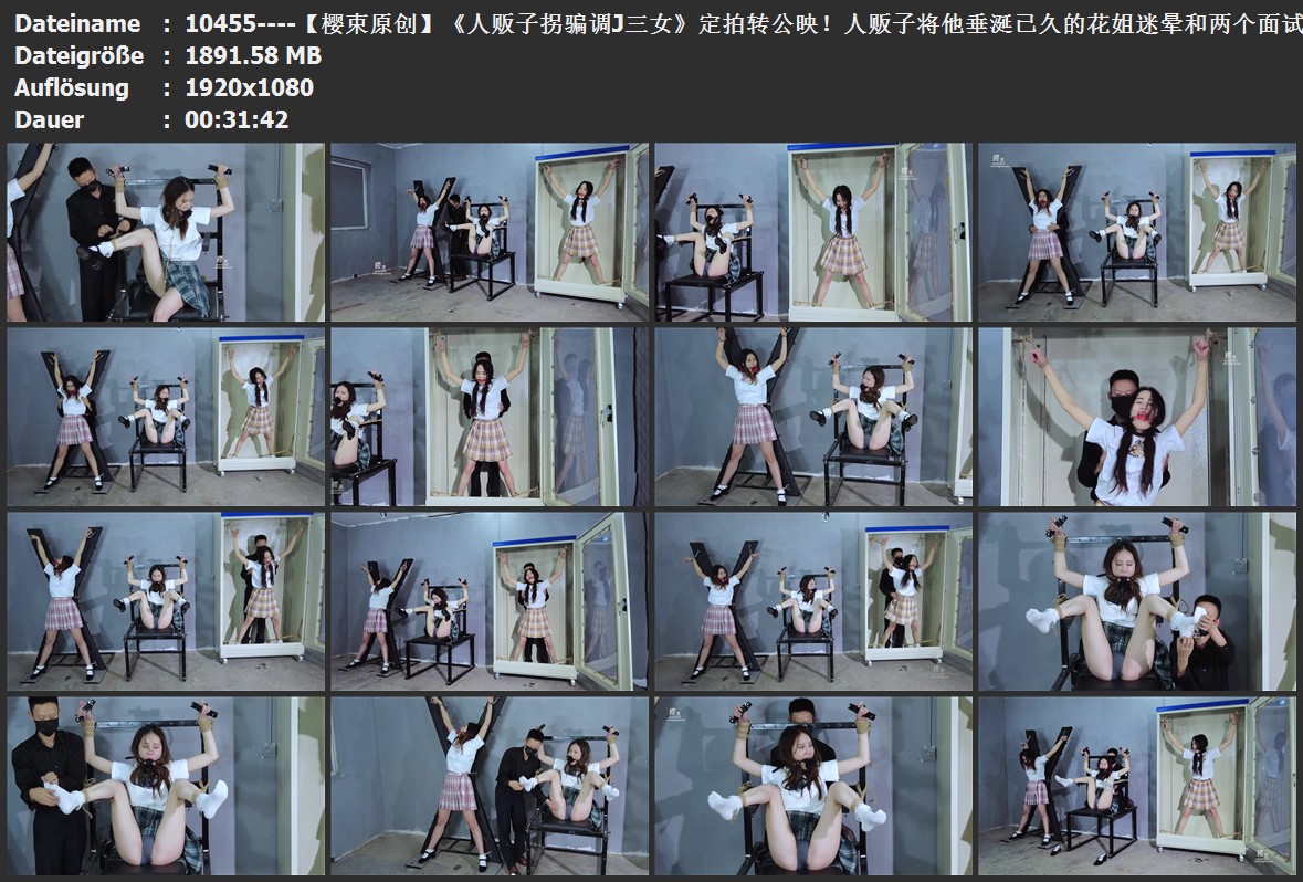 【樱束原创】《人贩子拐骗调J三女》定拍转公映!人贩子将他垂涎已久的花姐迷晕和两个面试学生一起拉到调J室全都带口球分别固定在X架 刑椅 铁柜里疯狂TK三女!口球口水不停流出!