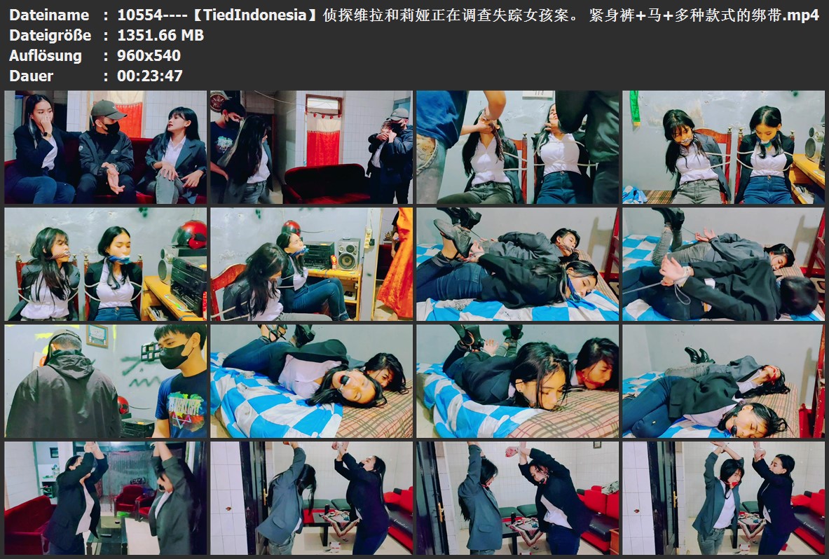 【TiedIndonesia】侦探维拉和莉娅正在调查失踪女孩案。 紧身裤+马+多种款式的绑带