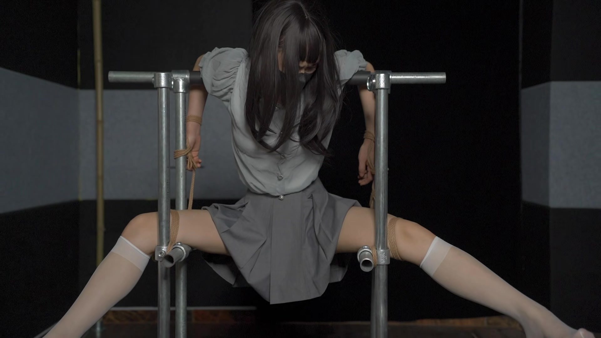 【缚心室】真空上阵,油光灰丝小美女直臂紧缚折磨,吊缚+驷马一