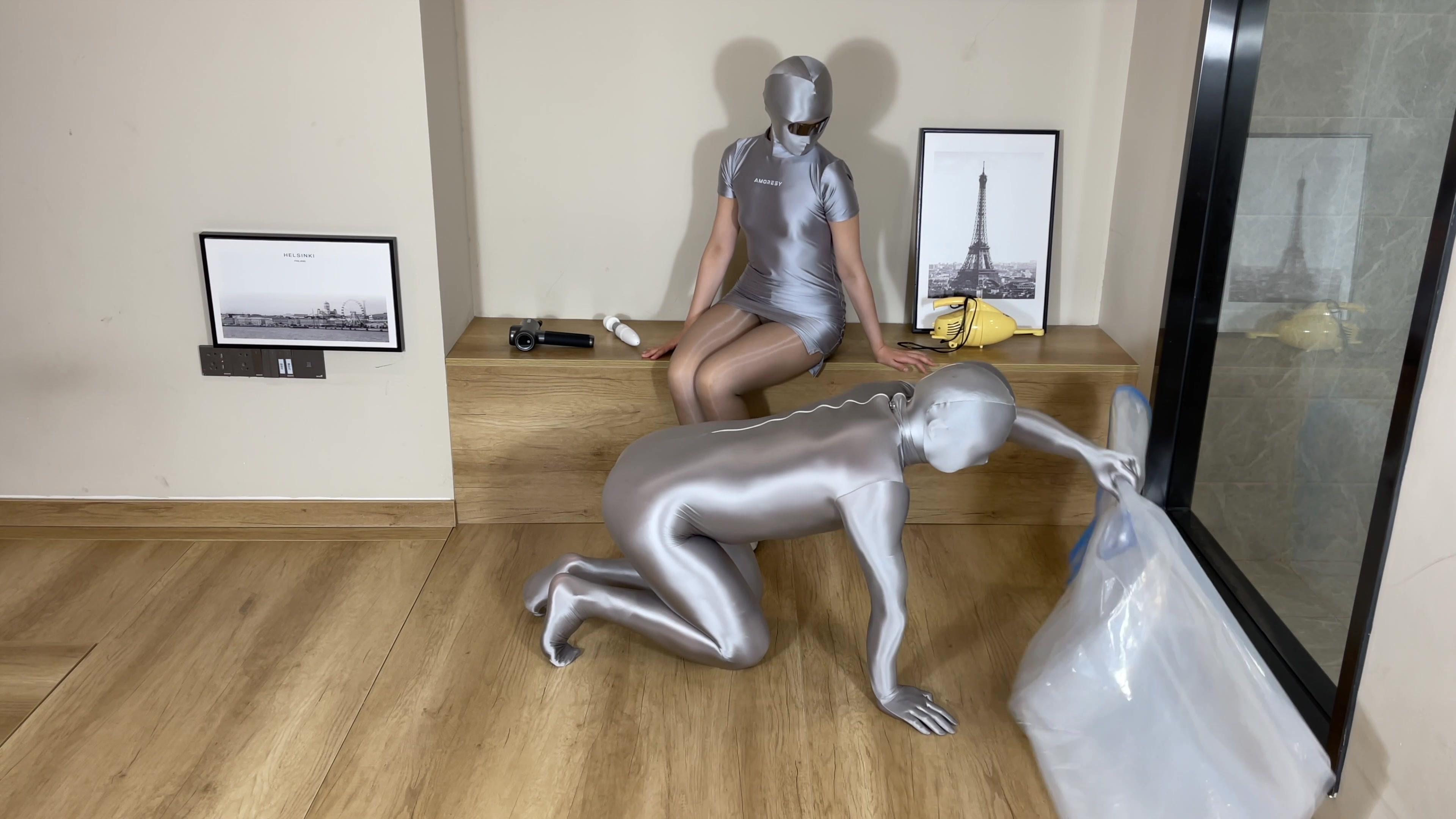 【爱丝袜の凌风姐姐】真空袋玩弄贱狗——(银色套装性感 ...