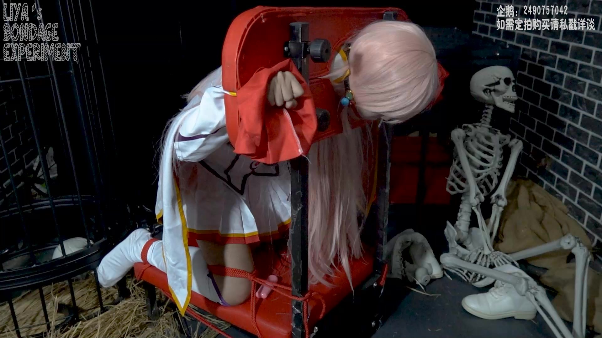 【缚心室】80多斤女学生的拘束架折磨小合集,啵啵贝VS炮机,两种