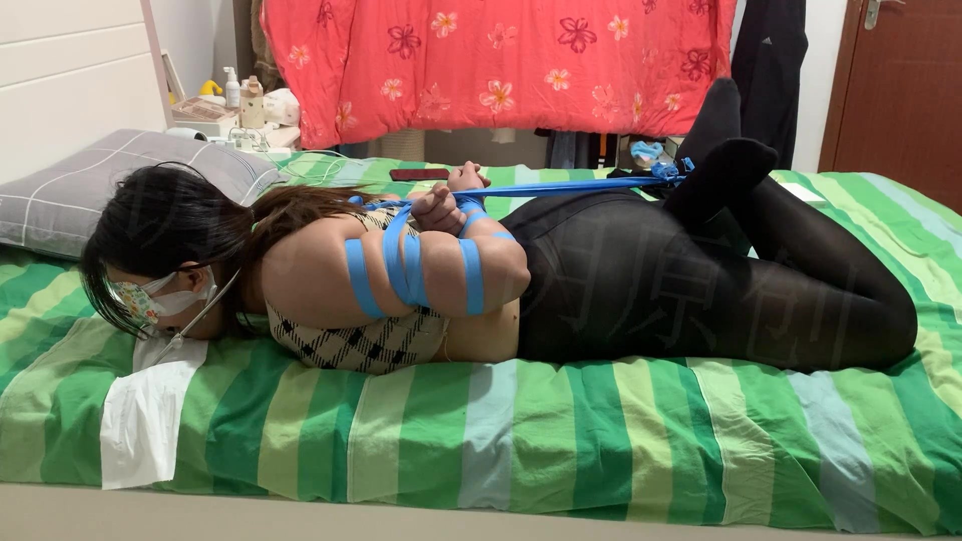 这次绑了个五花,肉肉的胳膊被勒出了深深的凹陷,紧致感十足,带上kq口水流的到处都是,保持这个姿势足足坚持了20多分钟,不得不说接受能力是越来越好了!