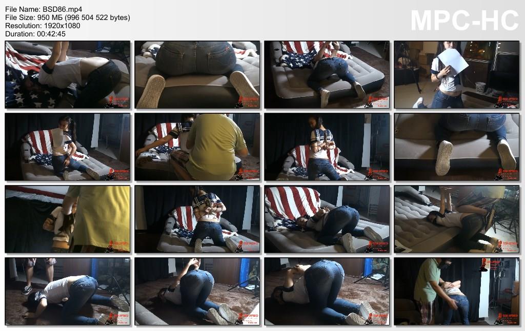 【BSD】隶娘风格-漂亮的泳装丝袜小妹,被紧缚在沙发上并吊起她的双手,看她在沙发上无助的挣扎