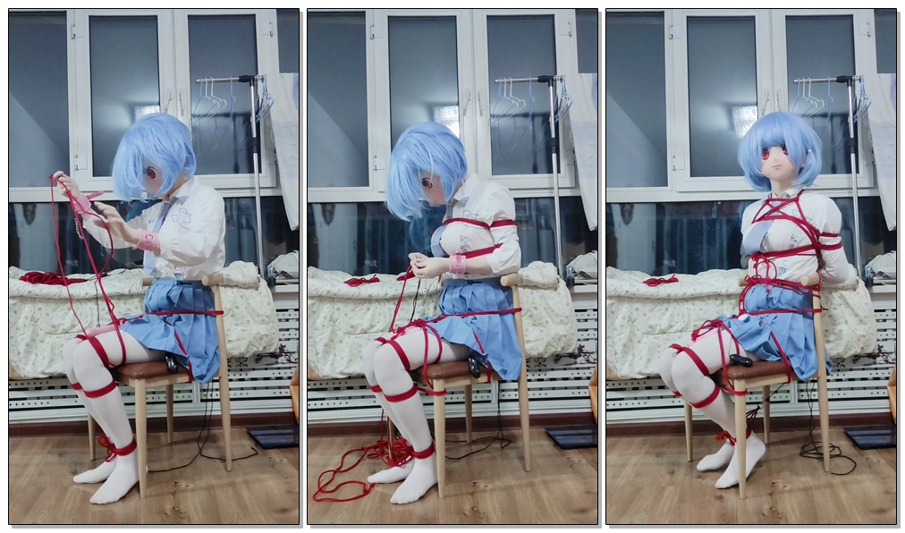 这次是在椅子上自缚,比沙发那次成功,双腿并排捆绑,脚腕用紧绳器连接在椅子背上,只要拉动紧绳器,就可以把脚拉高,最高可以拉但脚尖离地,自己玩的时候又忍不住作死,双脚已经拉的很紧了,还是用力把脚抬起来,尝试拉的更紧。
