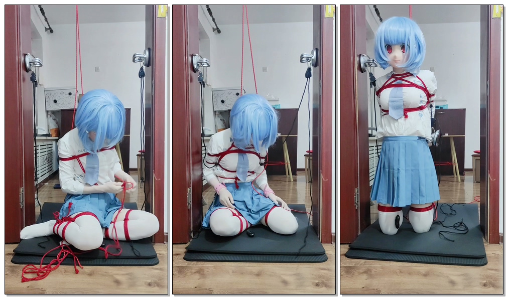 新买的吸盘到了,吸在门框上!然后就是加强版的折腿吊缚!双腿折叠捆绑,只有膝盖能够勉强碰到地面,上半身吊在门框上方,上胸绳吊在门框两侧,不仅限制了只能膝盖点地这次还强化了束缚力,使得没法转身,向前向后都难以挣扎,上半身几乎被固定在原地,这个姿势超级色,因为太色,绑到一半赶紧把玩具关了,害怕还没绑起来就去了,等到收紧到了最后一步,才把玩具重新打开。