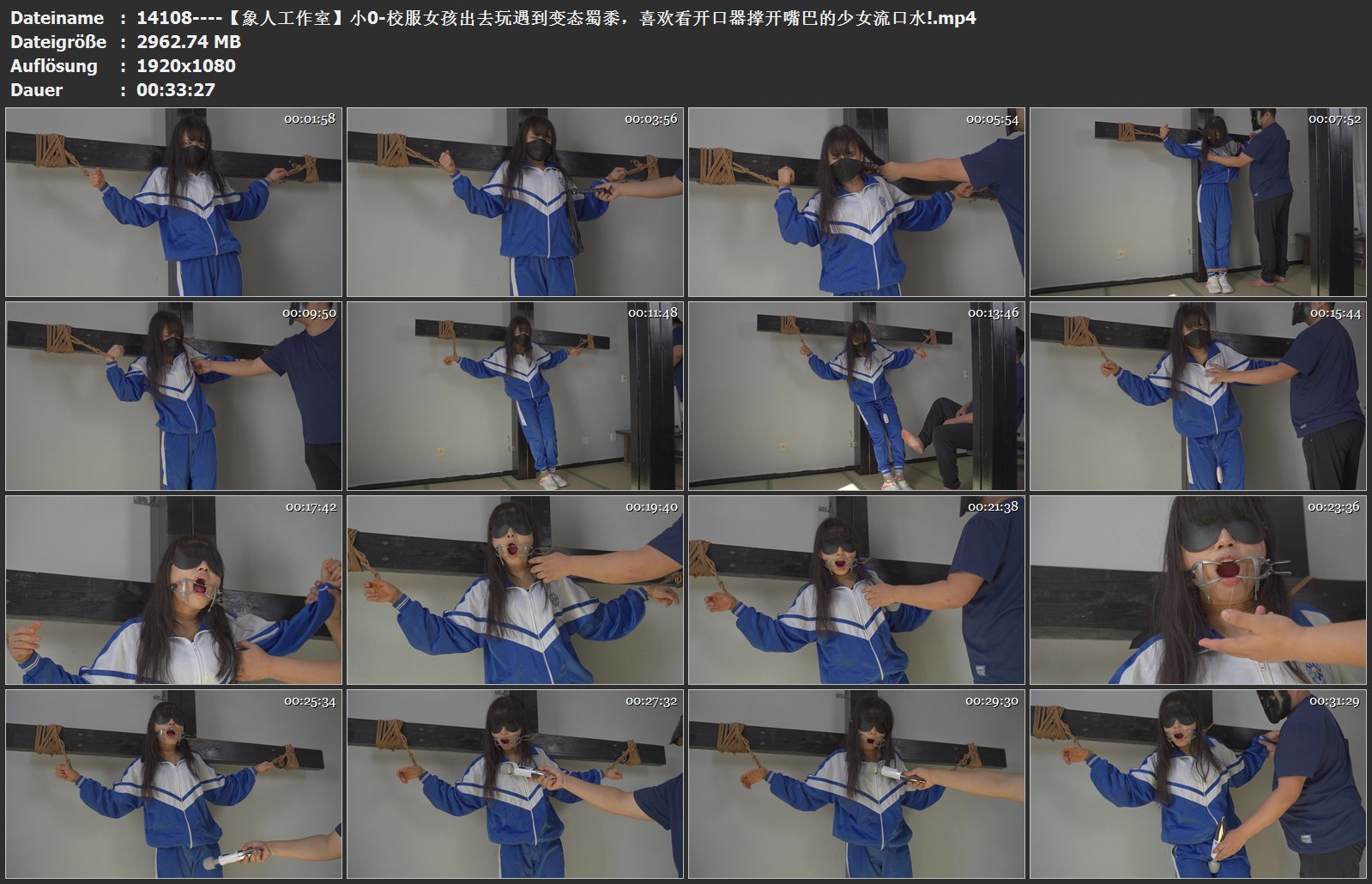 【象人工作室】小0-校服女孩出去玩遇到变态蜀黍,喜欢看开口器撑开嘴巴的少女流口水!