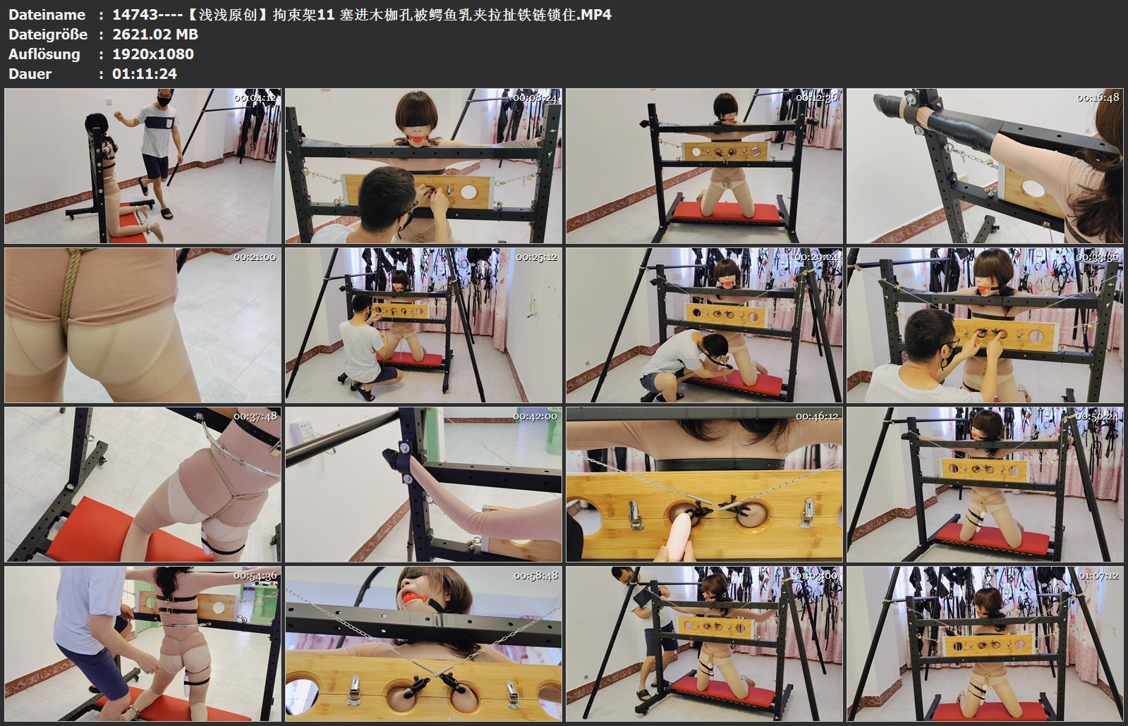 【浅浅原创】拘束架11 塞进木枷孔被鳄鱼乳夹拉扯铁链锁 ...