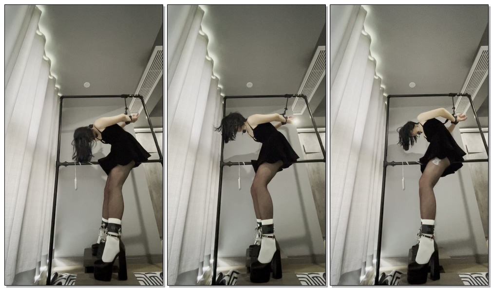 【我啊酷酷】伪娘短裙裙黑丝超高跟罚站强力电击