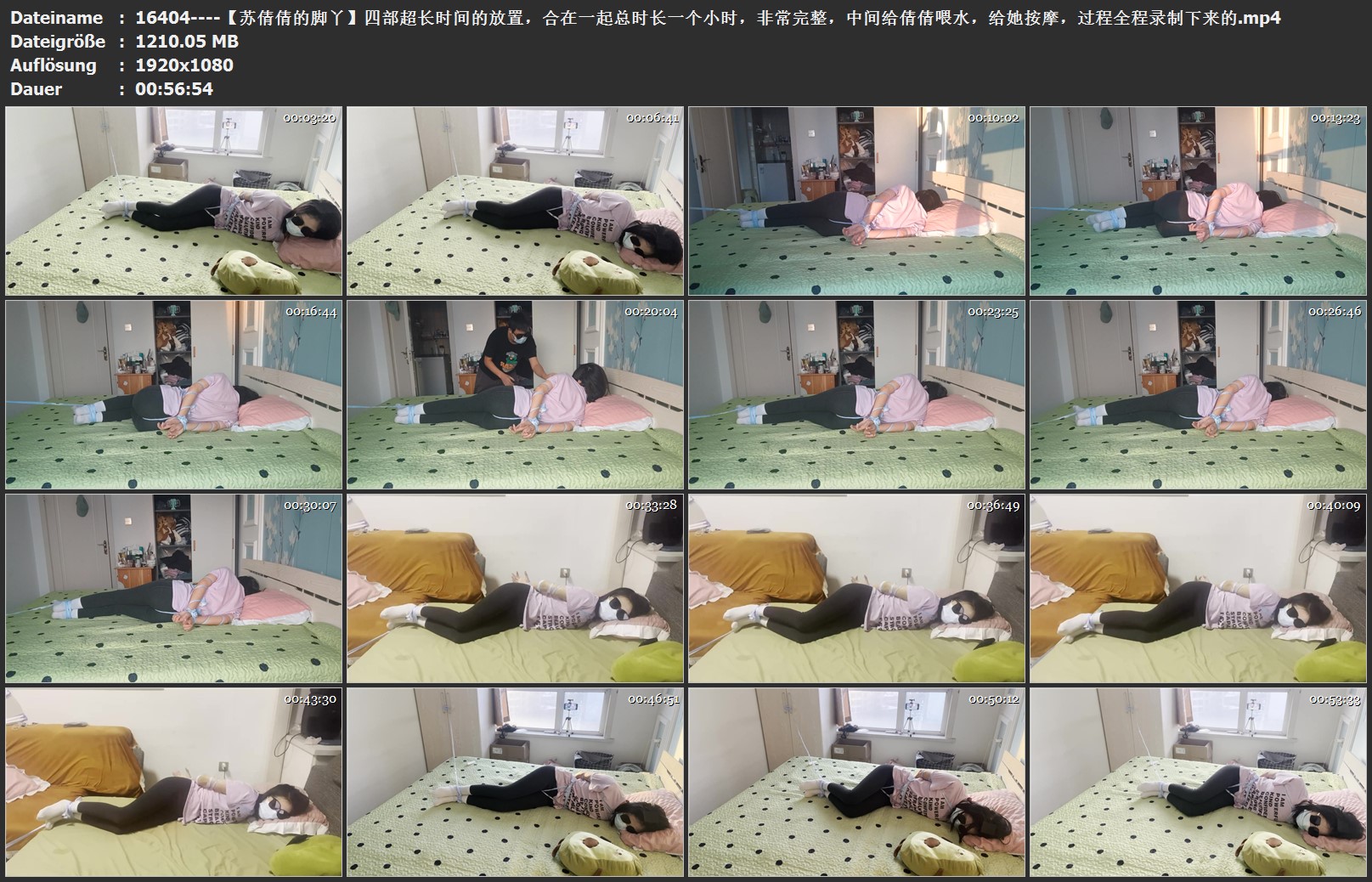 四部超长时间的放置,合在一起总时长一个小时,非常完整,中间给倩倩喂水,给她按摩,过程全程录制下来的