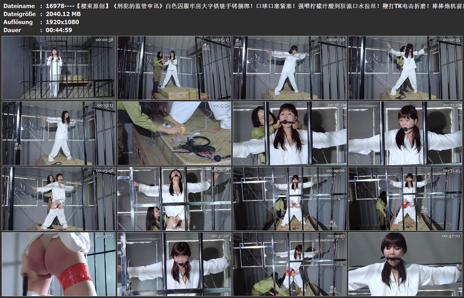 【樱束原创】《刑犯的监管审讯》白色囚服牢房大字铁链手铐捆绑!口球口塞紧塞!强喂柠檬汁酸到狂流口水拉丝!鞭打/TK/电击折磨!棒棒/炮机前后强震强G!
