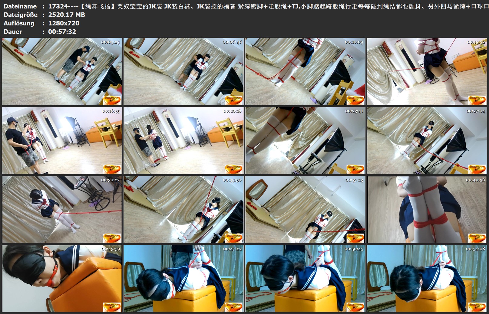 【绳舞飞扬】美奴莹莹的JK装 JK装白袜、JK装控的福音 紧缚踮脚+走股绳+TJ,小脚踮起跨股绳行走每每碰到绳结都要颤抖、另外四马紧缚+口球口水收集(TK+棒棒伺候)