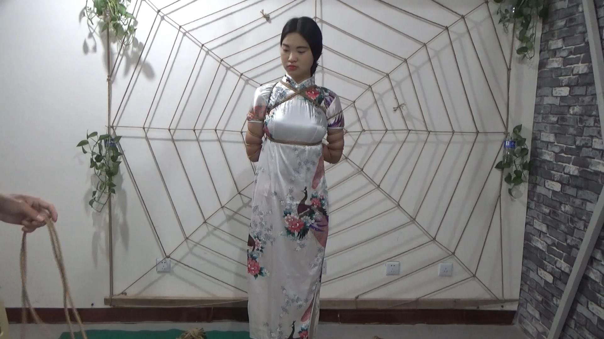旗袍五花严厉紧缚 小姑娘柔韧性很好 绑的很紧 手吊的高 时间也长 解开时候手都紫了 楚楚可怜
