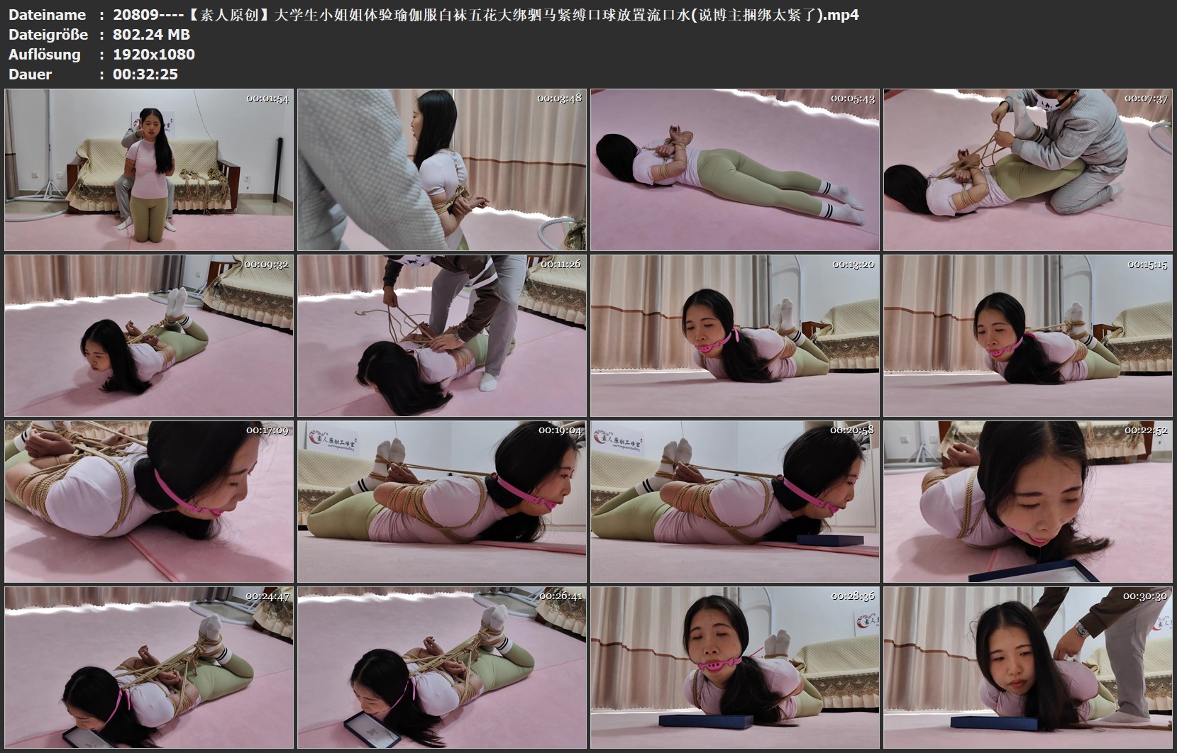 【素人原创】大学生小姐姐体验瑜伽服白袜五花大绑驷马紧缚口球放置流口水(说博主捆绑太紧了)