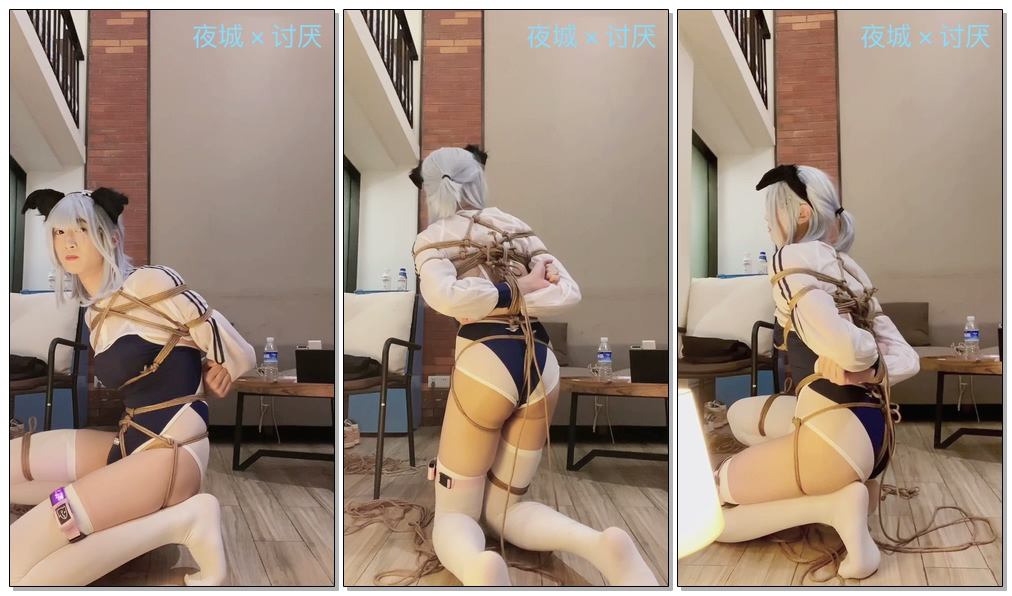 夜城被讨厌吊缚玩弄过后放了下来,但讨厌没有马上帮夜城解开绳子,而是把夜城放在客厅里并架好了摄像机,拍下了夜城被紧缚后挣扎但无法挣脱的丑态,然后去洗澡换装了。2023年的最后一个晚上,在麻绳的摩擦声夹杂着夜城的低声呻吟