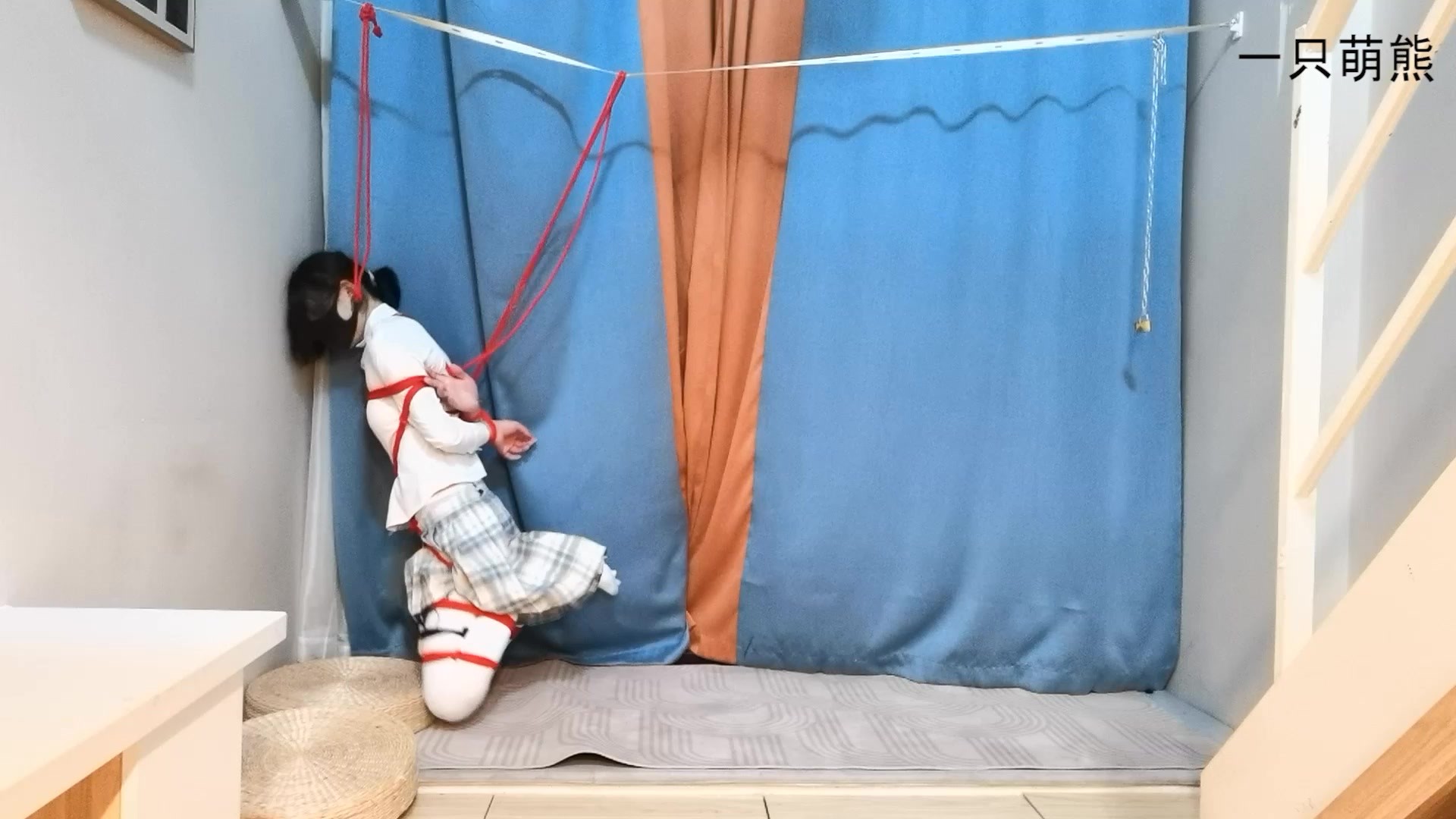 【一只萌熊】并肘直臂吊缚强制垫脚电击自缚,又差点翻车