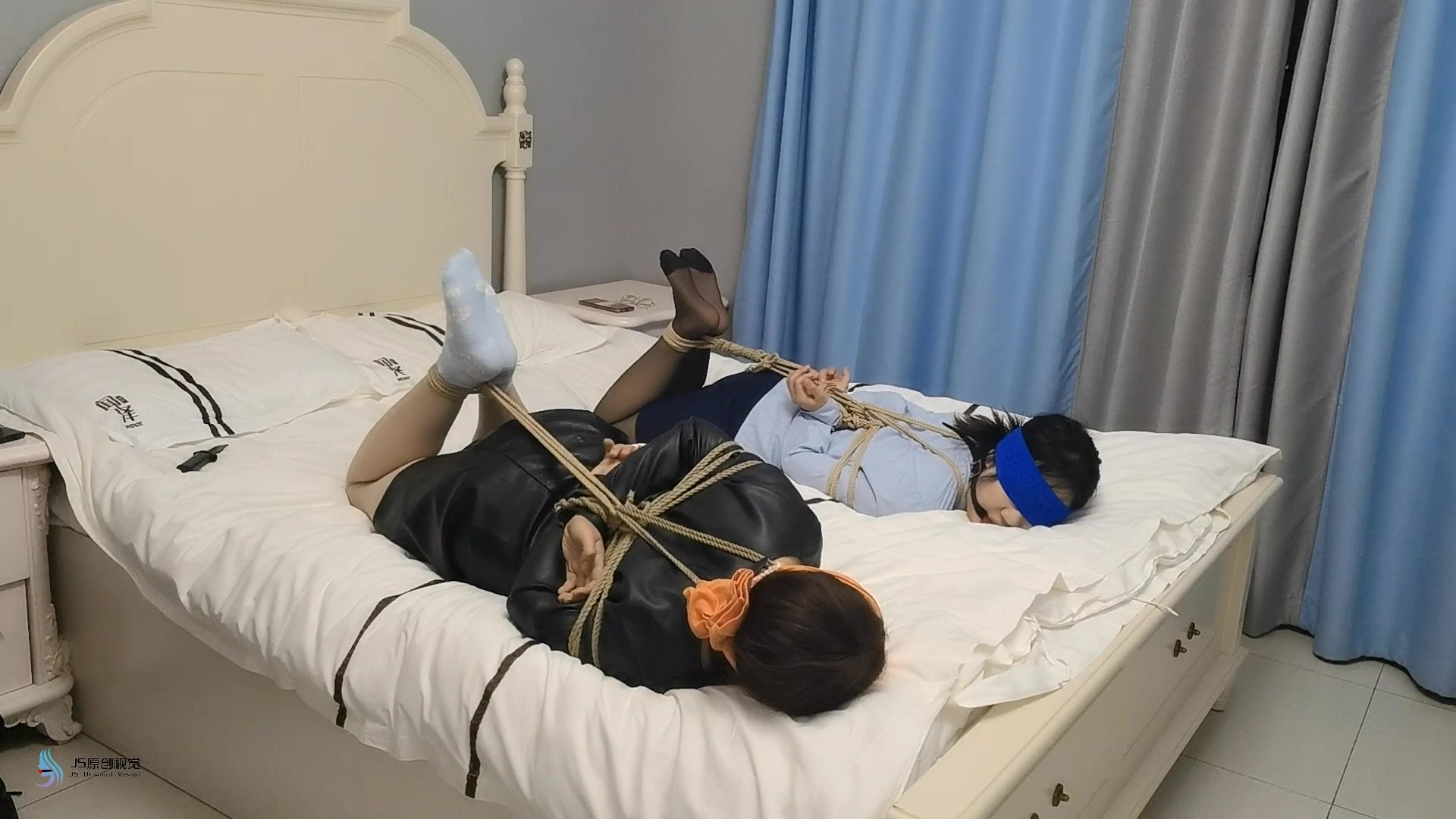 两名女孩回家,脱鞋[X_X]玩弄手机,玩累的她们睡了过去。这时一名歹徒闯进来,将两人捆绑起来。眼镜也给蒙上,嘴里都塞着口球。歹徒找到了一张银行卡,逼问密码。妹子不说,开始挠她们的脚底。歹徒得到密码后扬长而去。两个妹子不断的挣扎,最终挣脱束缚报警