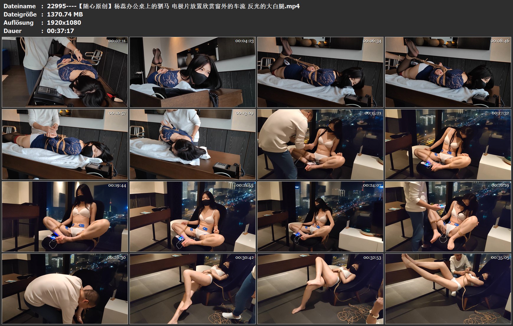 【随心原创】杨蕊办公桌上的驷马 电极片放置欣赏窗外的车流 反光的大白腿