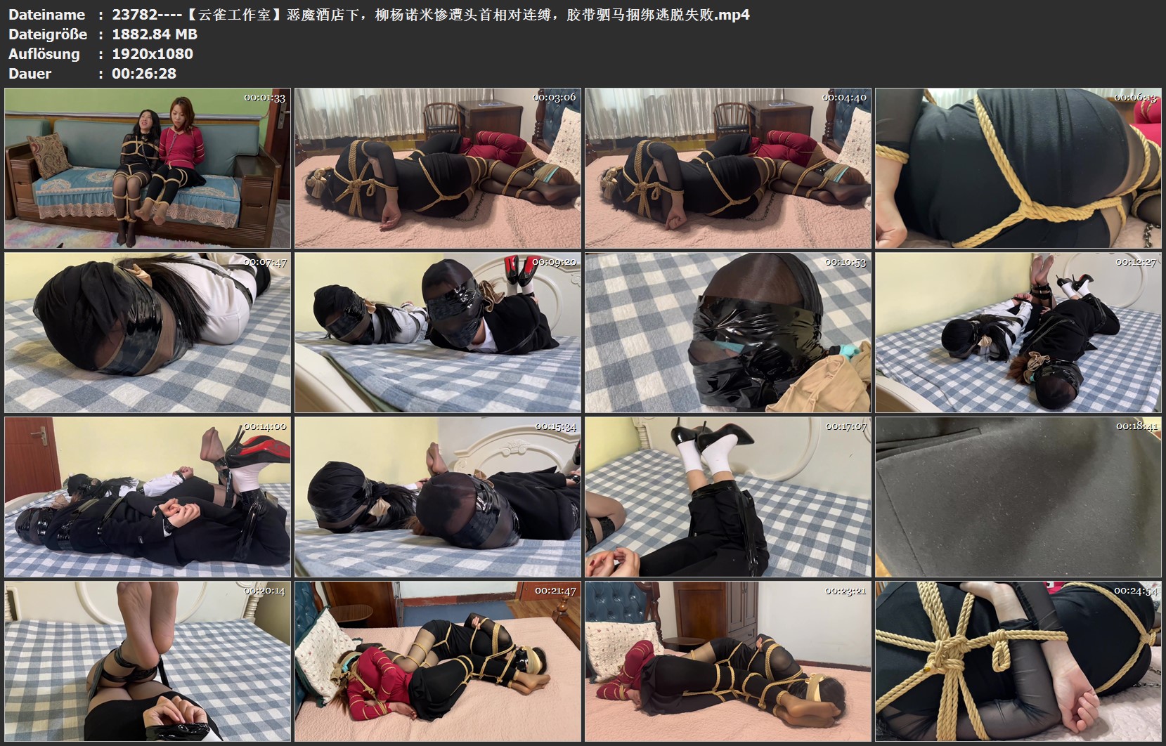 【云雀工作室】恶魔酒店下,柳杨诺米惨遭头首相对连缚,胶带驷马捆绑逃脱失败