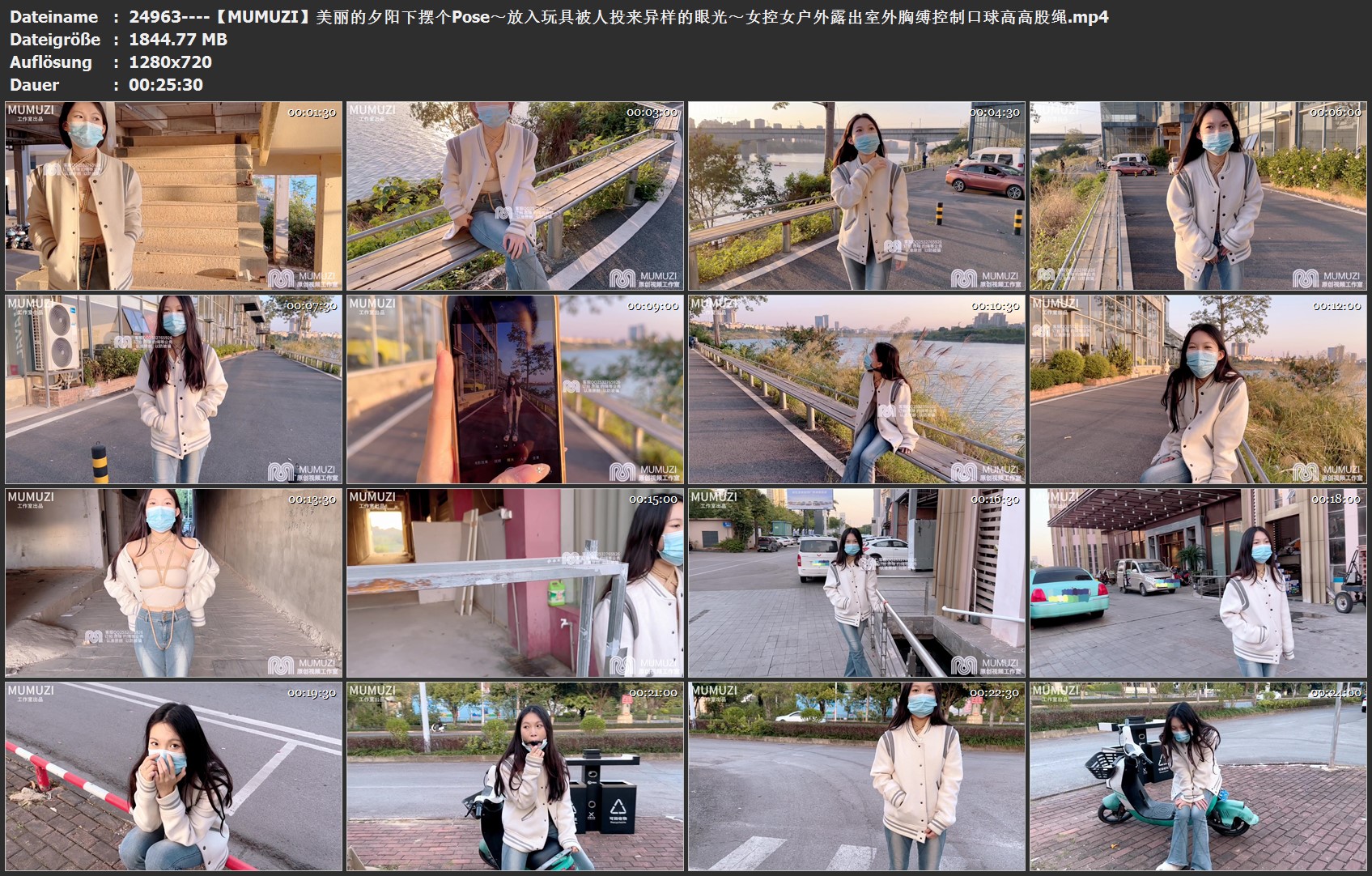 【MUMUZI】美丽的夕阳下摆个Pose~放入玩具被人投来异样的眼光~女控女/户外/露出/室外/胸缚/控制/口球/高高/股绳