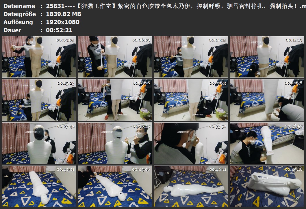 【狸猫工作室】紧密的白色胶带全包木乃伊,控制呼吸,驷 ...