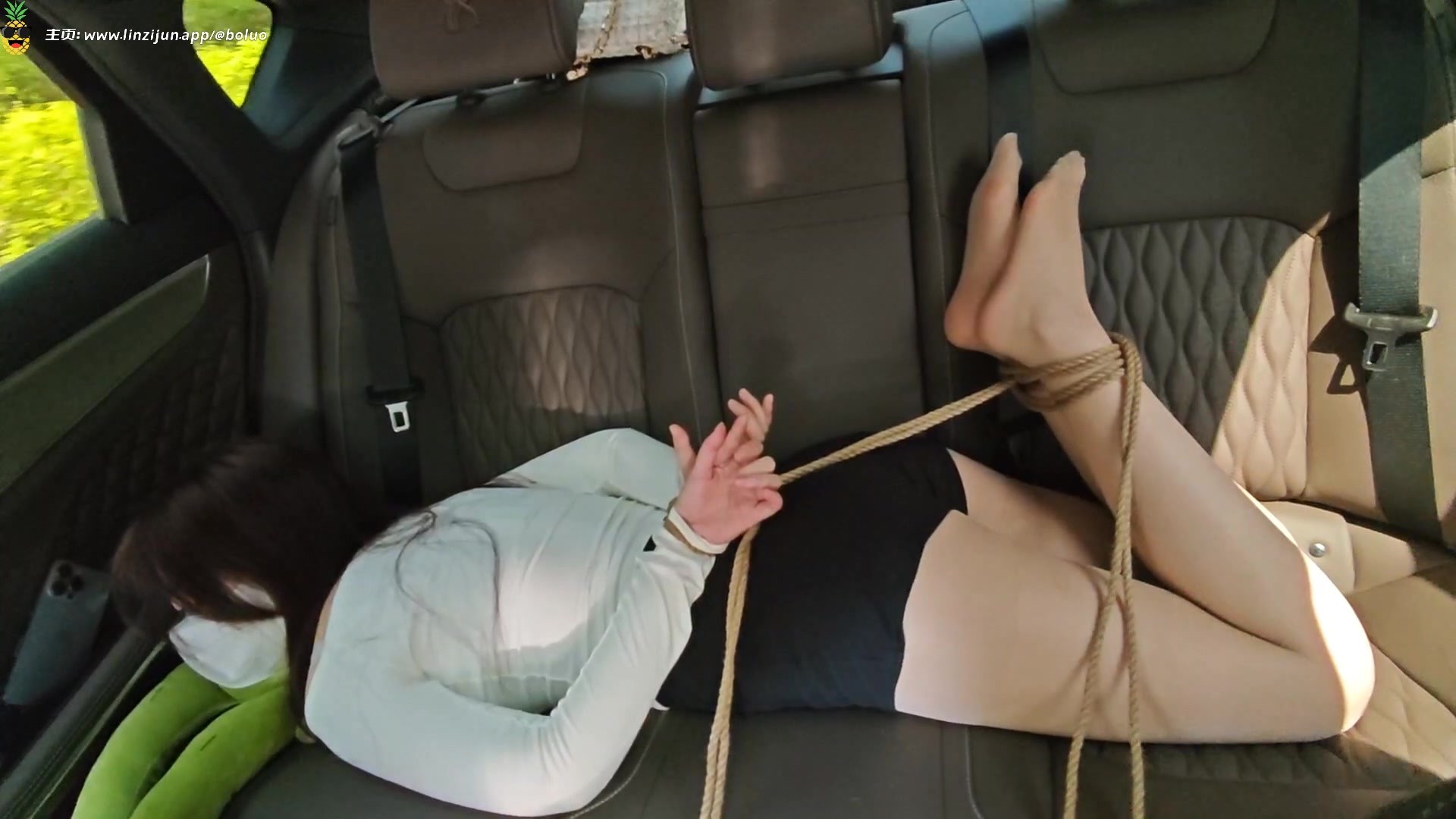 去拍摄场地的路上也不放过婉婉,把婉婉绑到车的后排,路上人来人往,等红绿灯的时候更是惊险刺激
