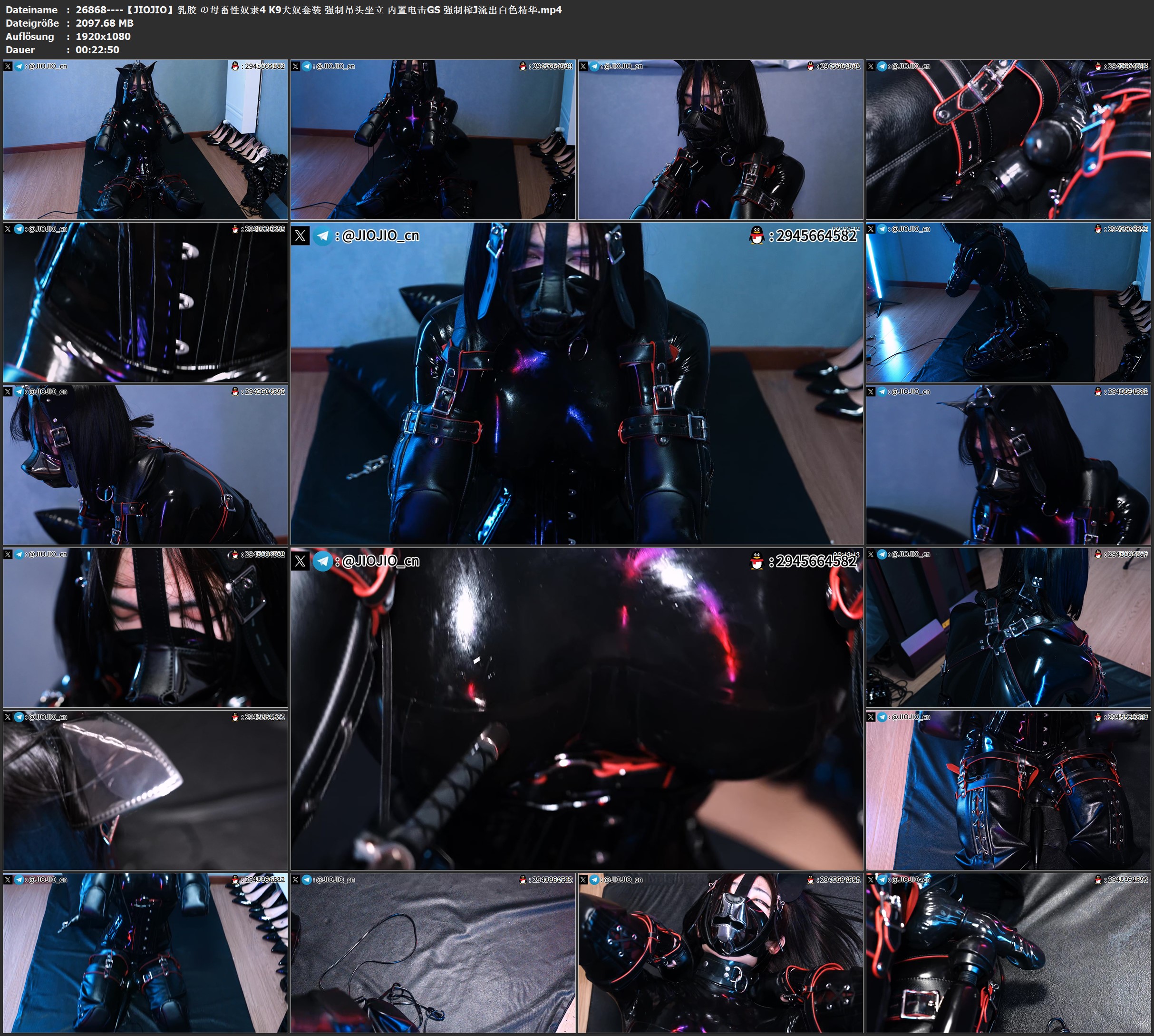 【JIOJIO】乳胶 の母畜性奴隶4 K9犬奴套装 强制吊头坐立 内置电击GS 强制榨J流出白色精华