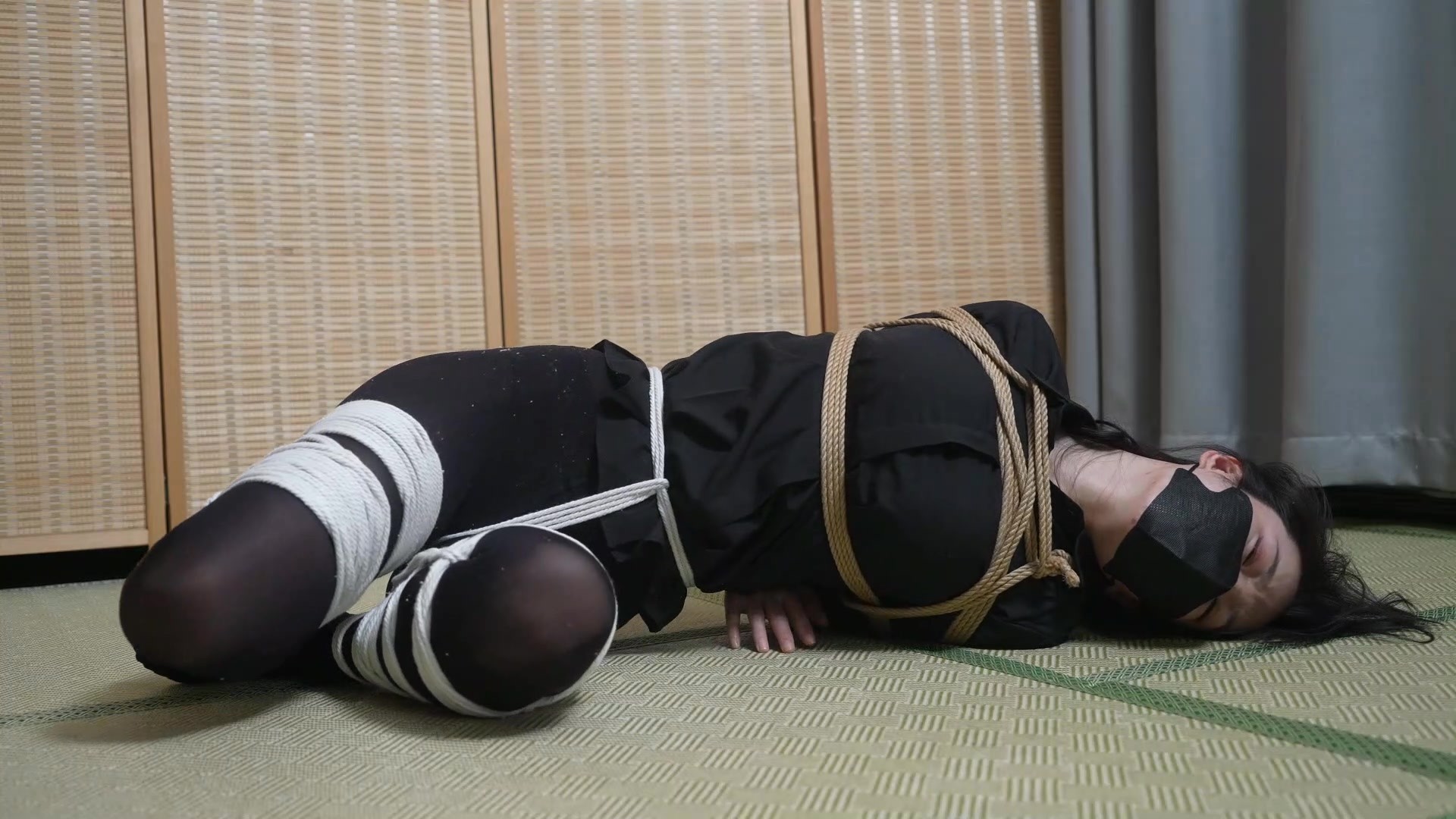 嗷嗷-后手折腿缚,白棉绳+麻绳捆绑