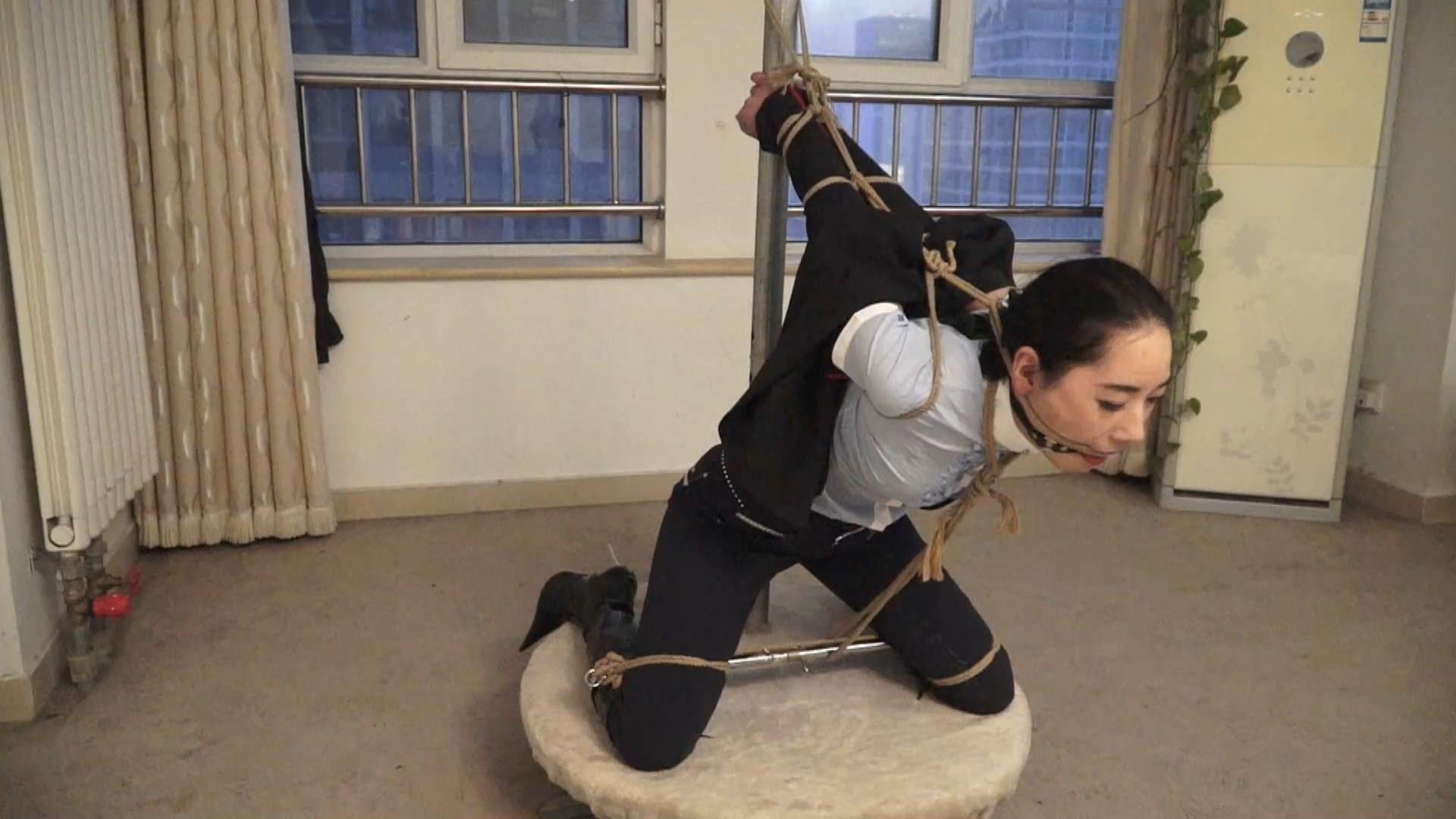 【缚心室】真空上阵,油光灰丝小美女直臂紧缚折磨,吊缚+驷马一