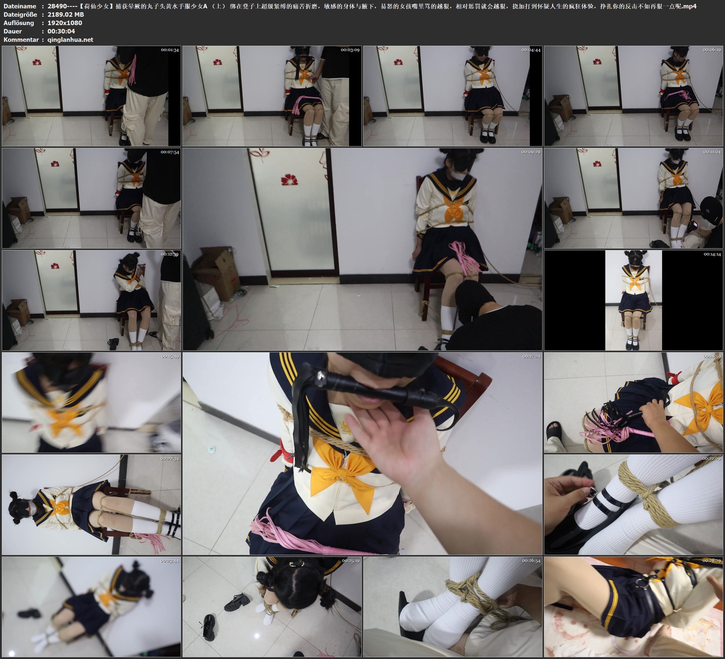 【荷仙少女】捕获晕厥的丸子头黄水手服少女A (上) 绑在凳子上超级紧缚的痛苦折磨,敏感的身体与腋下,易怒的女孩嘴里骂的越狠,相对惩罚就会越狠,挠加打到怀疑人生的疯狂体验,挣...