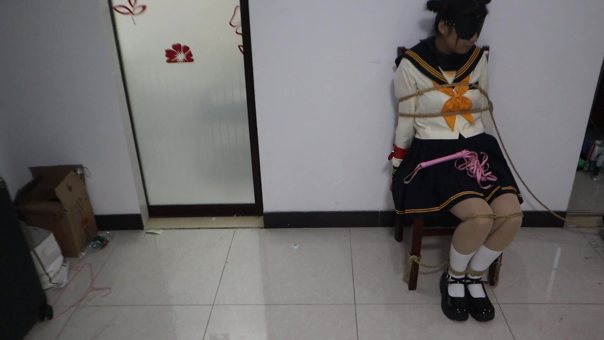 【荷仙少女】捕获晕厥的丸子头黄水手服少女A (上) 绑 ...