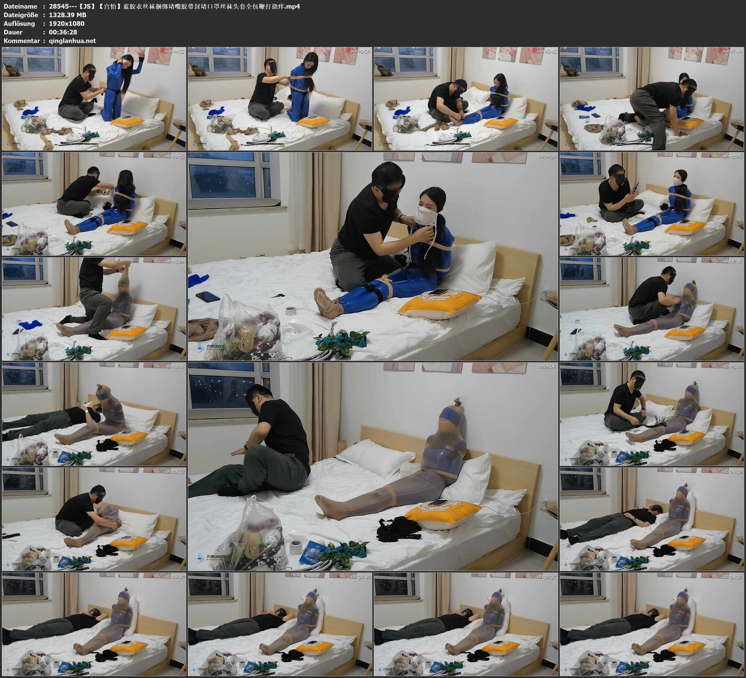 【宫怡】蓝胶衣丝袜捆绑堵嘴/胶带封堵/口罩/丝袜头套/全包/鞭打/挠痒