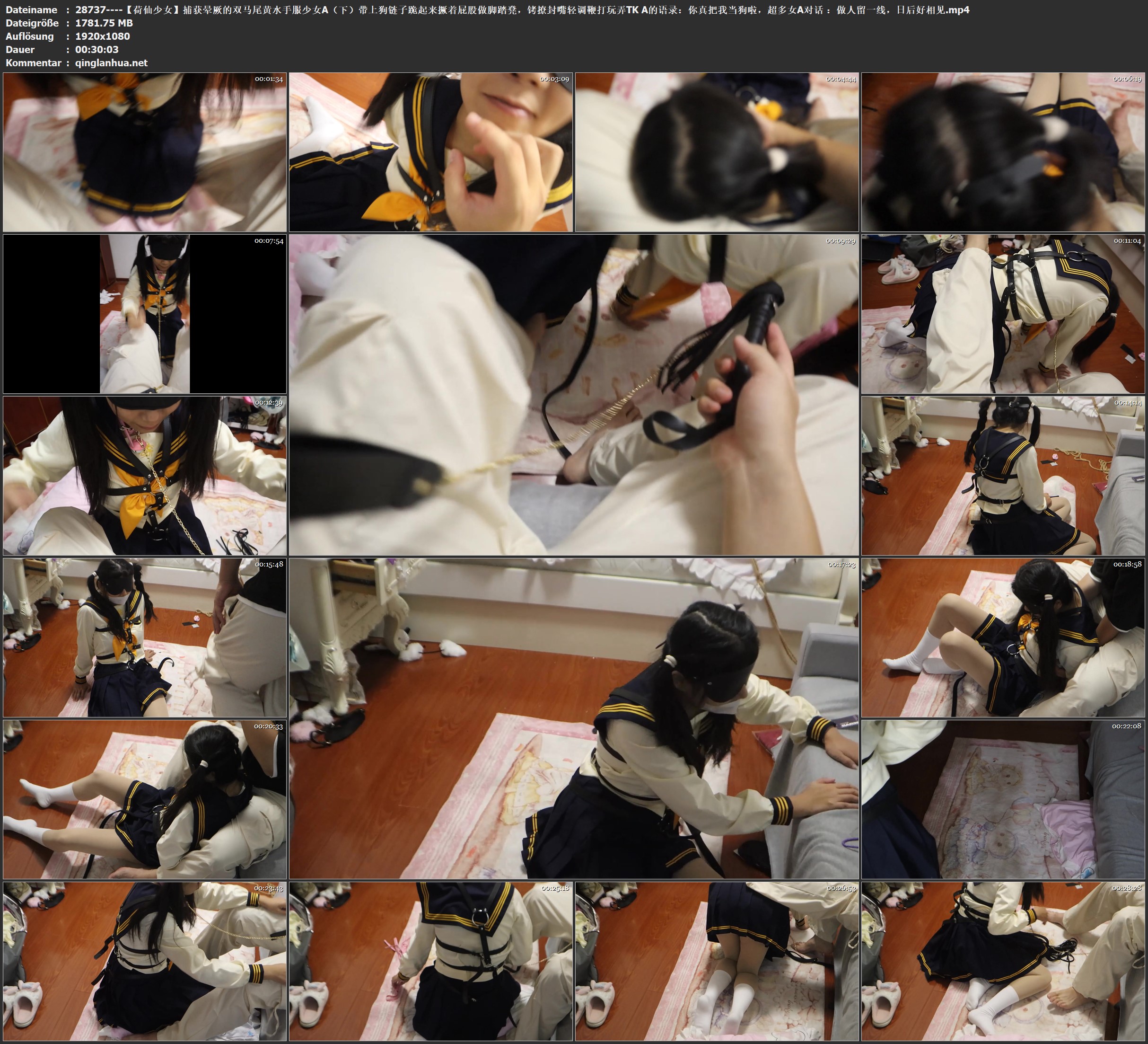 【荷仙少女】捕获晕厥的双马尾黄水手服少女A(下)带上狗链子跪起来撅着屁股做脚踏凳,铐撩封嘴轻调鞭打玩弄TK A的语录:你真把我当狗啦,超多女A对话 :做人留一线,日后好相见