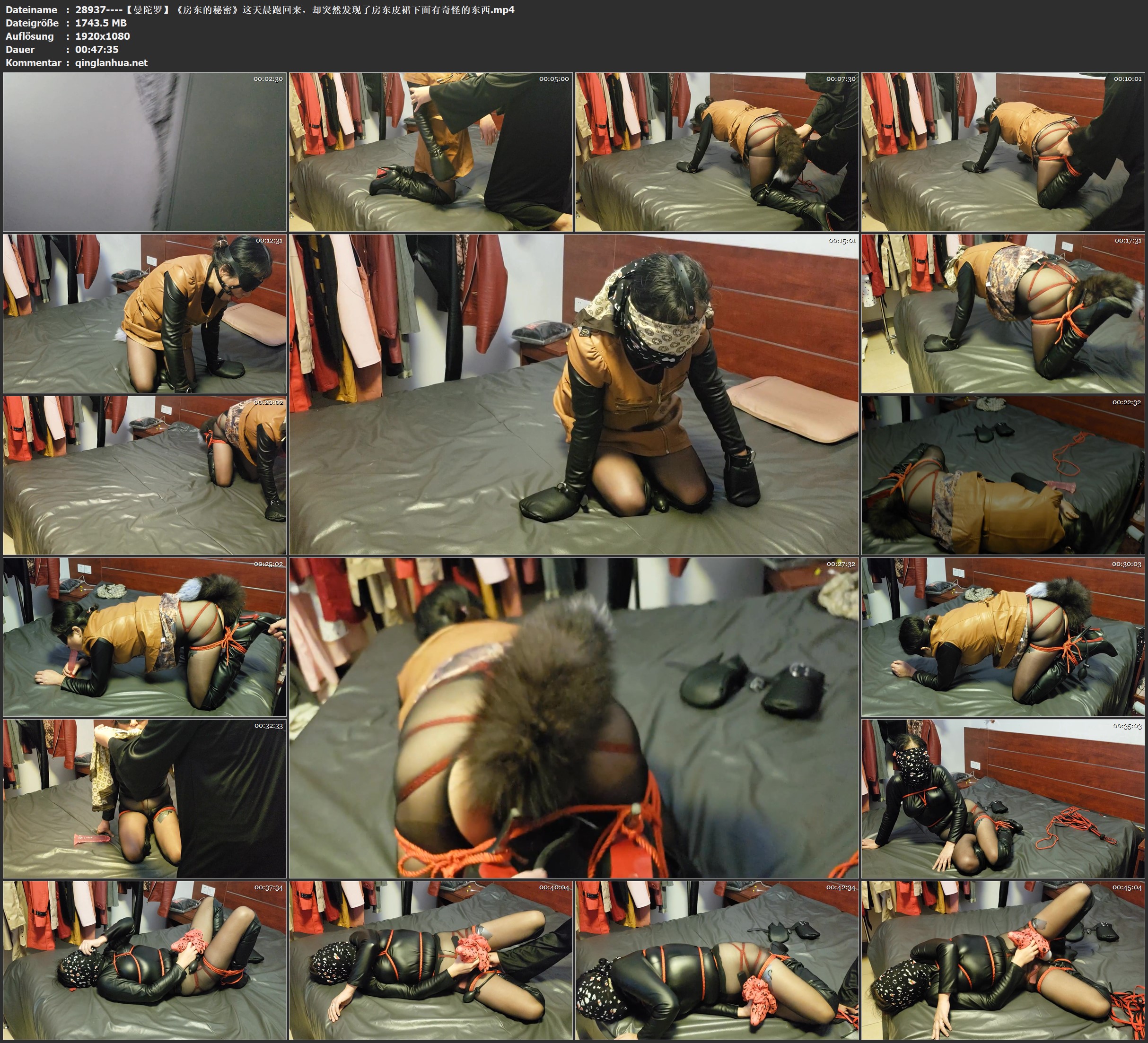 几分钟后,终于还是忍不住冲了上去,一把抓住她,然后把她的口罩拉起来一看,原来在房东的嘴巴上,竟然带着马具口,拉开房东的拉链,然后发现房东的身上被麻绳密密麻麻的紧缚着,这时看到了旁边的行李箱,于是直接把她塞了进去,想看看我怎么玩这条骚 母狗吗?