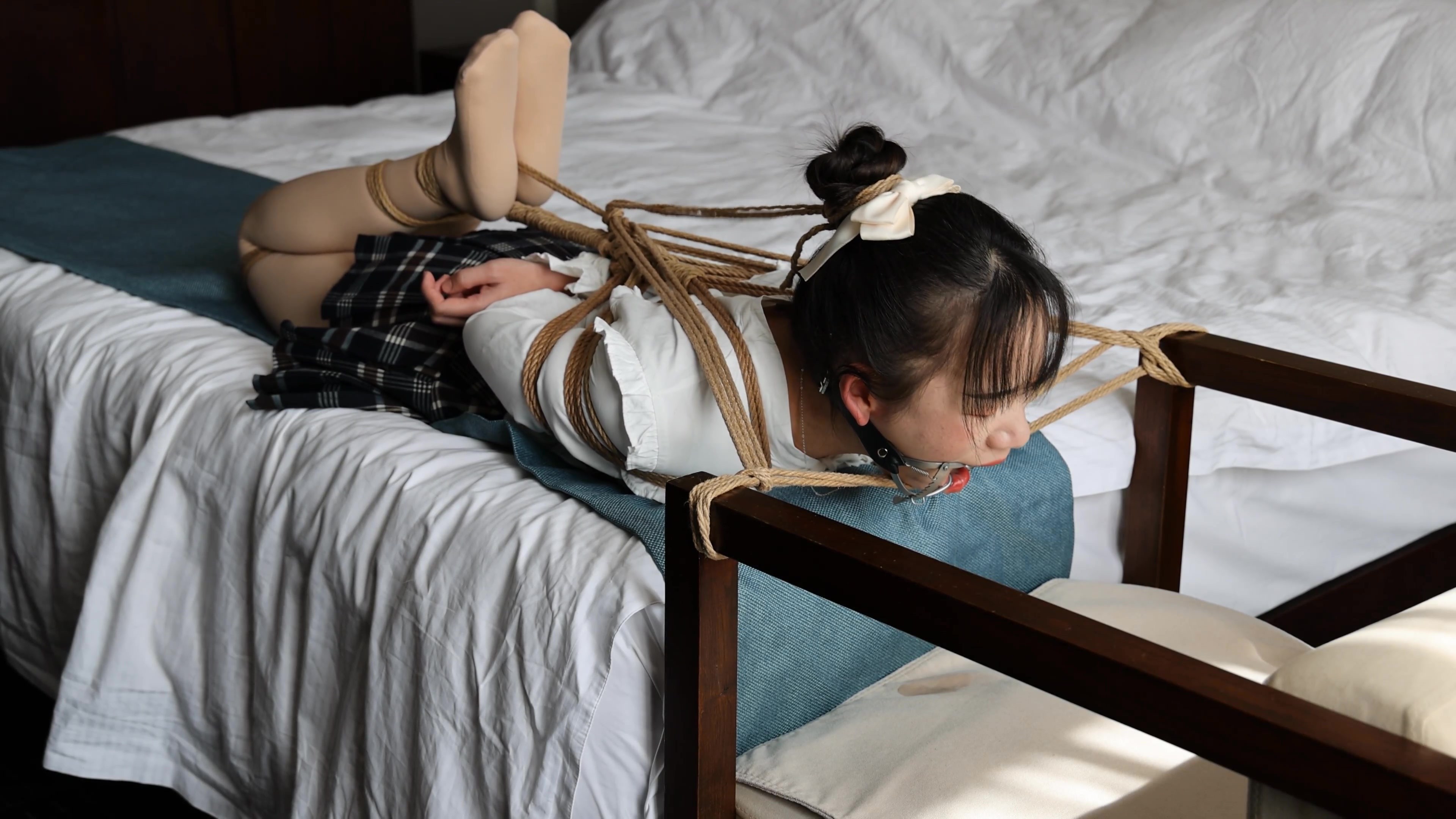 【缚心室】真空上阵,油光灰丝小美女直臂紧缚折磨,吊缚+驷马一