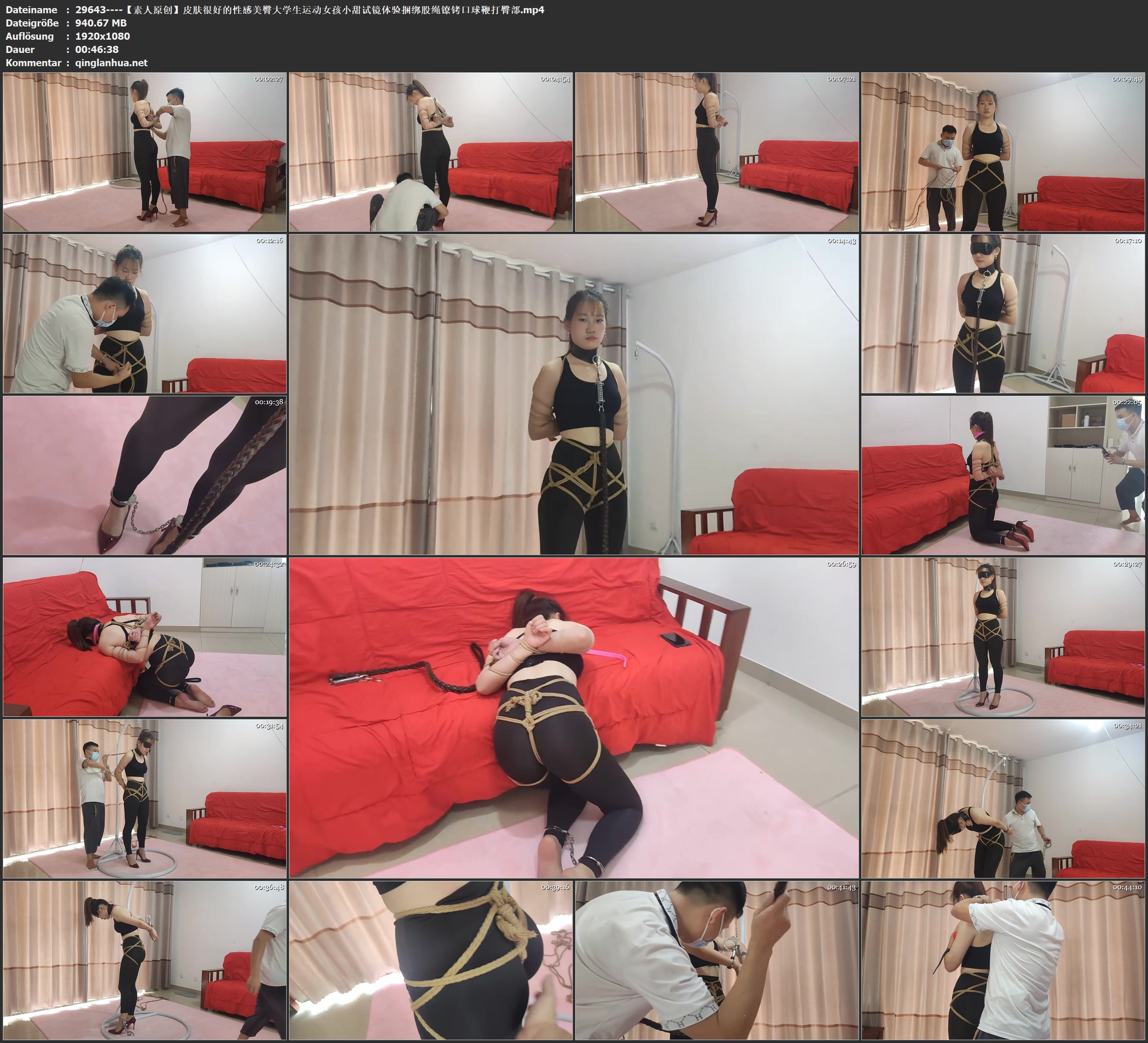 【素人原创】皮肤很好的性感美臀大学生运动女孩小甜试镜体验捆绑股绳镣铐口球鞭打臀部