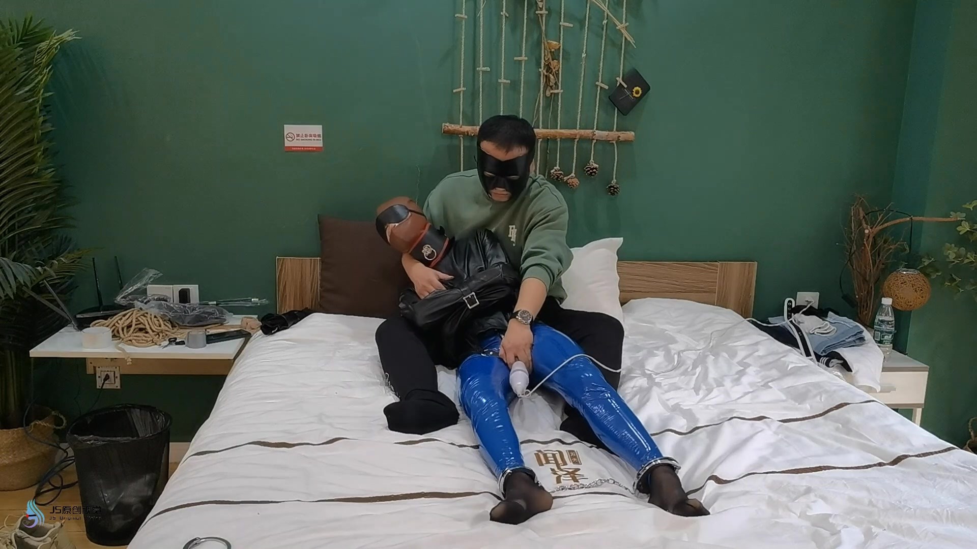 【JS】【激辣】拘束游戏/胶衣/黑丝/丝袜堵嘴/胶带封堵/头套/眼罩/脚铐/棒棒刺激