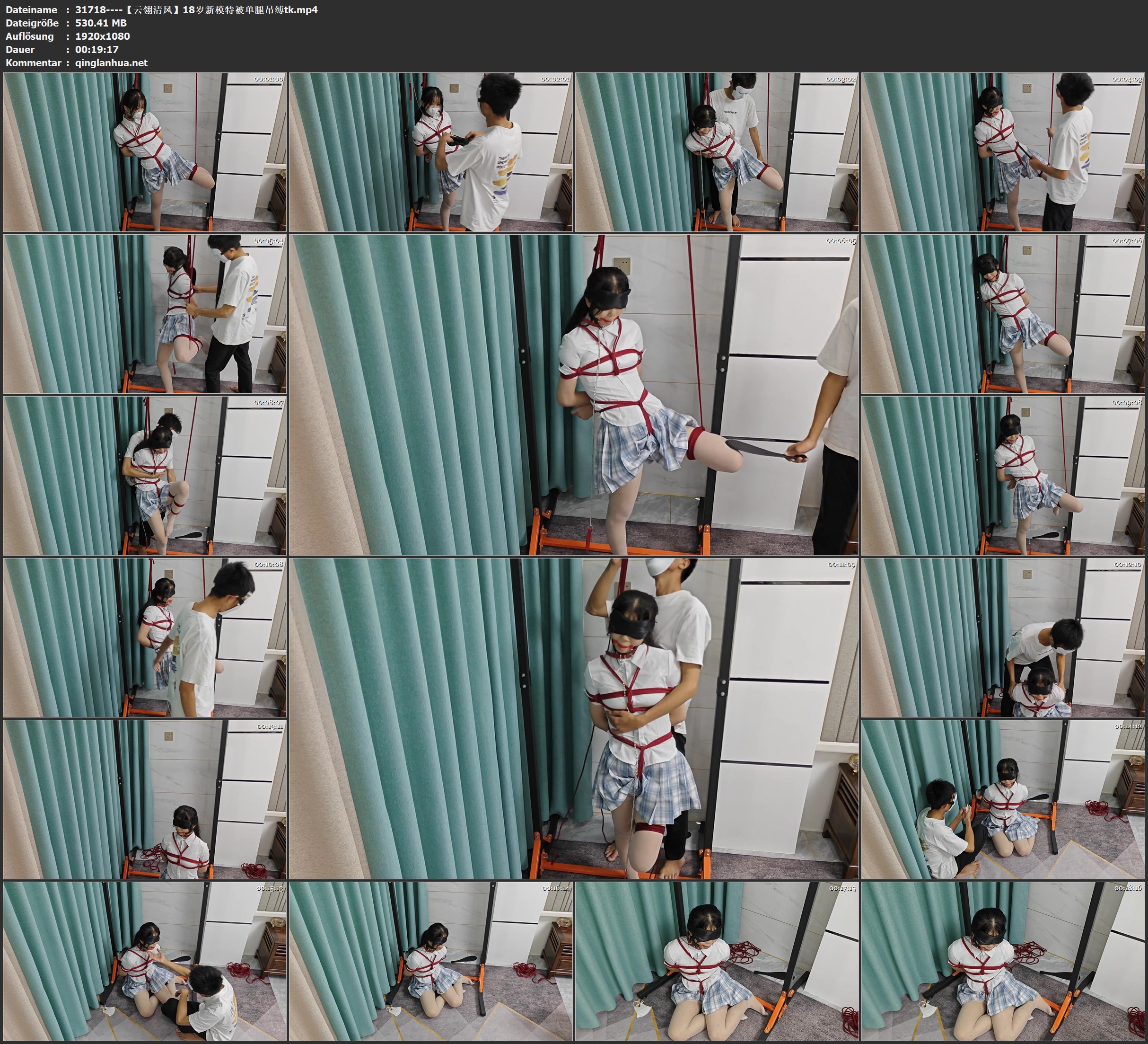 18岁新模特第二次拍摄,清纯可爱,剧情是被单腿吊起来,被tk+塞td,妹子躲闪无用,被无限折磨至哭