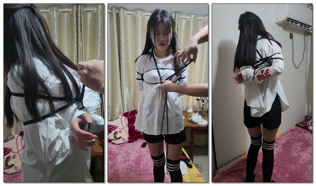 【皖北绳艺】小染白色衬衫+过膝袜+日式捆绑+牵引走路 ...