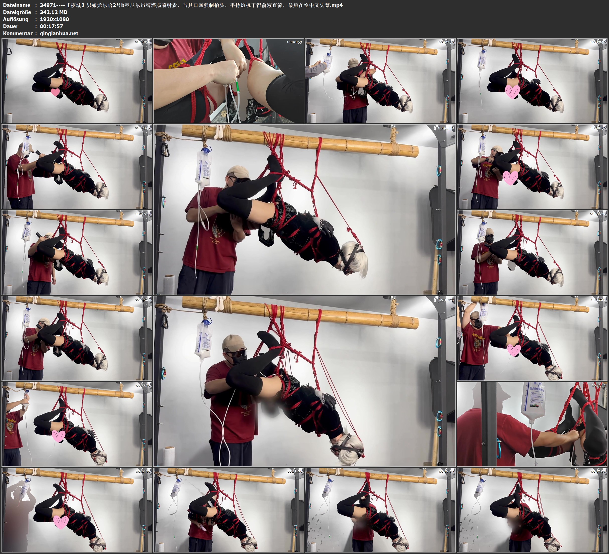 【夜城】男娘尤尔哈2号b型尼尔吊缚灌肠喷射责,马具口塞强制抬头,手持炮机干得前液直流,最后在空中又失禁