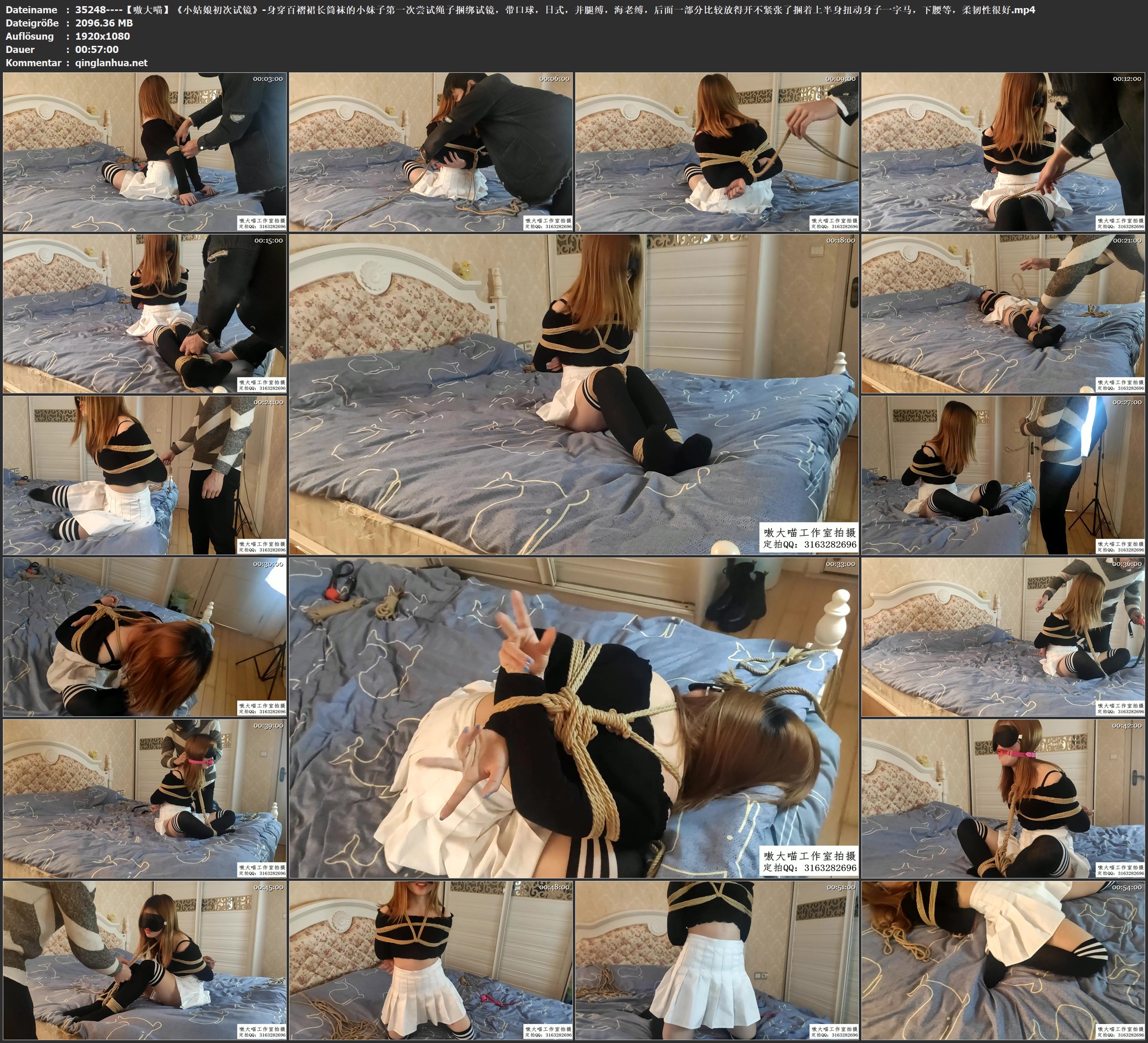 《小姑娘初次试镜》-身穿百褶裙长筒袜的小妹子第一次尝试绳子捆绑试镜,带口球,日式,并腿缚,海老缚,后面一部分比较放得开不紧张了捆着上半身扭动身子一字马,下腰等,柔韧性很好