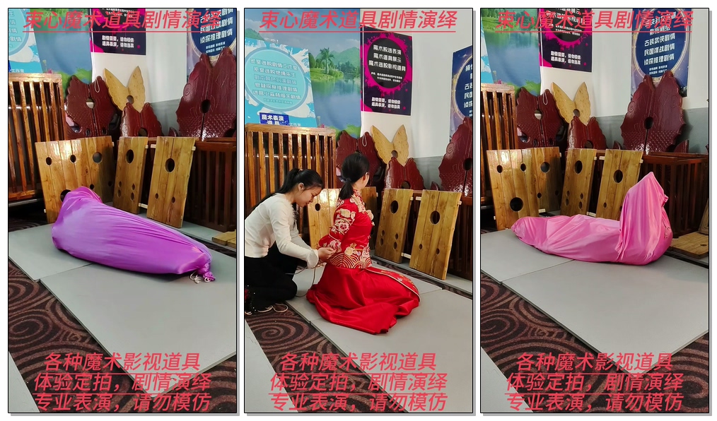 【束心工作室】兰兰蓝色礼服,红色秀禾服,五花捆绑,绑脚,两种丝绸布袋逃脱游戏