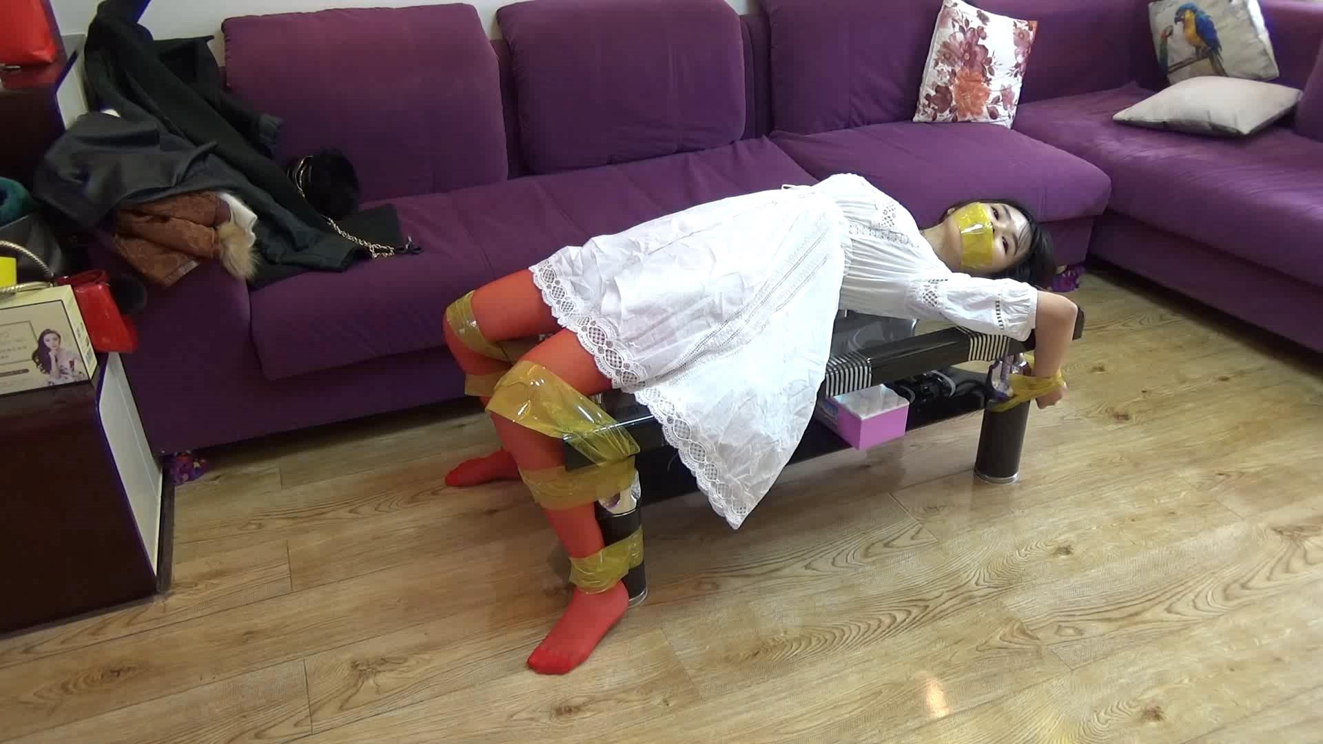 彩色丝袜胶带紧缚,胶带多重封嘴,胶带驷马大字捆....