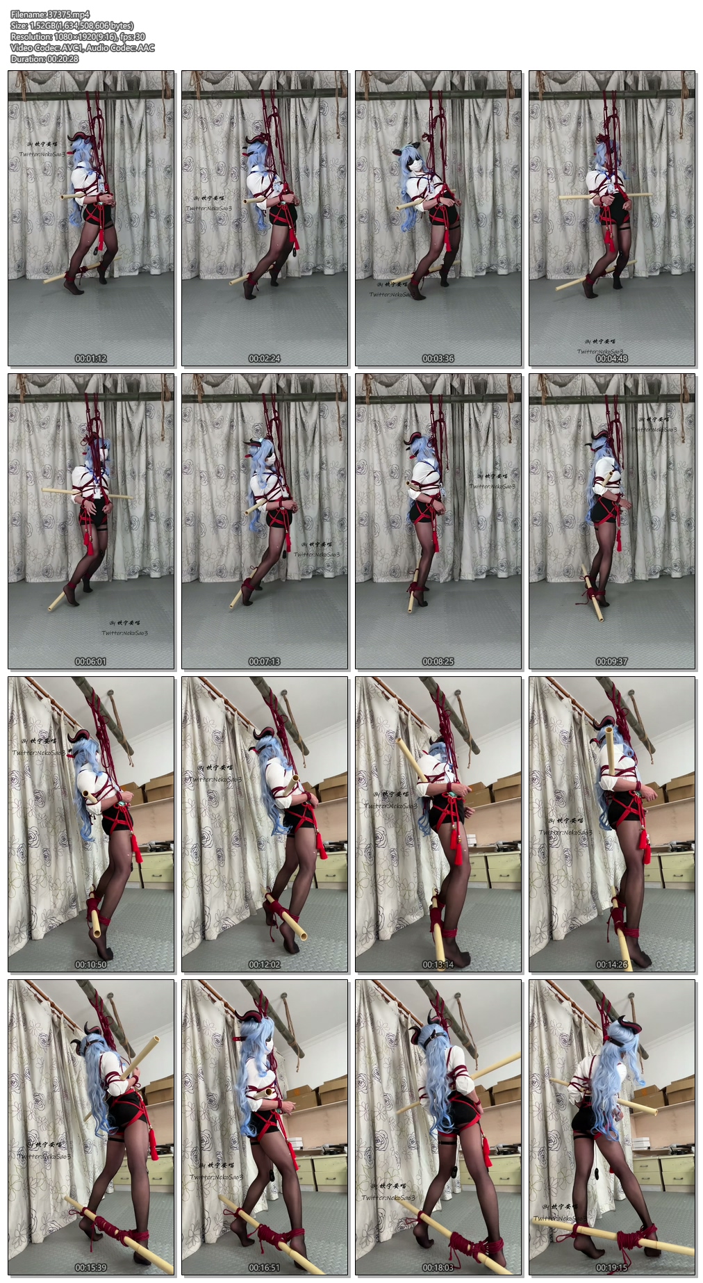 [加班到深夜的甘雨在下班路上被绑架了。她被带到了一个小房间里,蒙上眼睛,接着她的身体被从前面吊了起来,让她只能被迫仰着身子、勉强踮脚站立着。绑匪用两根竹竿、一根将甘雨的双腿分开固定,另一根在腰后固定住手肘、将手腕在腰前捆紧。在打开[X_X]的奇妙小玩具之后,绑匪饶有兴致地看着甘雨愤怒而又不甘地扭动着身子,拼命尝试摆脱束缚又徒劳无功。最后,看腻了的绑匪打了个哈欠,慢悠悠的走出房门、关上了灯,只留下甘雨在漆黑的屋内乞求般地呼喊着呻吟着……]