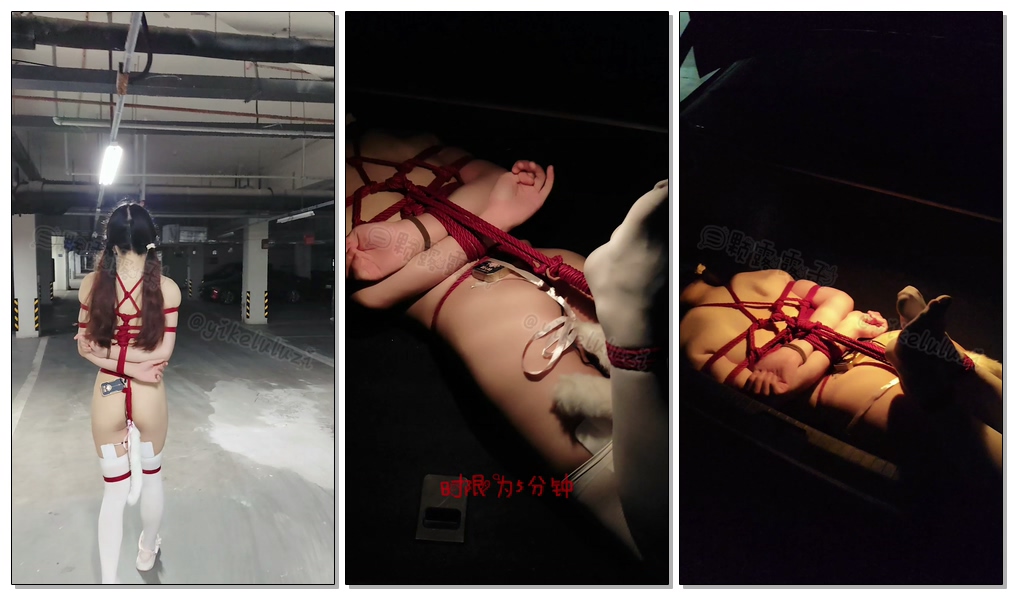 【一颗露露子】户外捆绑篇10——全裸日式捆绑白丝过膝袜狐狸尾巴探索地下车库,大腿捆绑股绳郊狼电击大腿限制行走,任务失败接受后备箱驷马紧闭惩罚