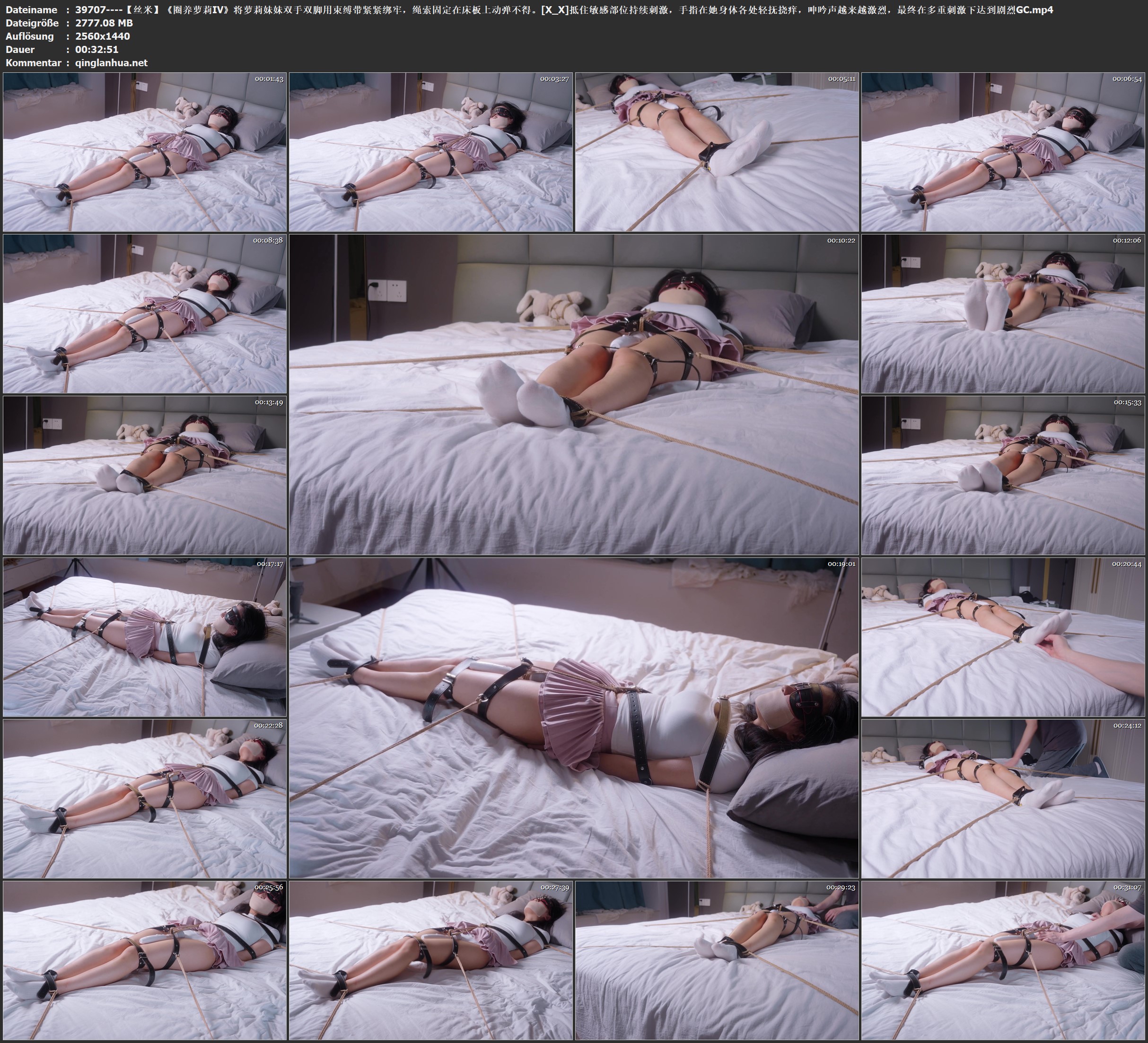 【丝米】《圈养萝莉Ⅳ》将萝莉妹妹双手双脚用束缚带紧紧绑牢,绳索固定在床板上动弹不得。[X_X]抵住敏感部位持续刺激,手指在她身体各处轻抚挠痒,呻吟声越来越激烈,最终在多重刺激...