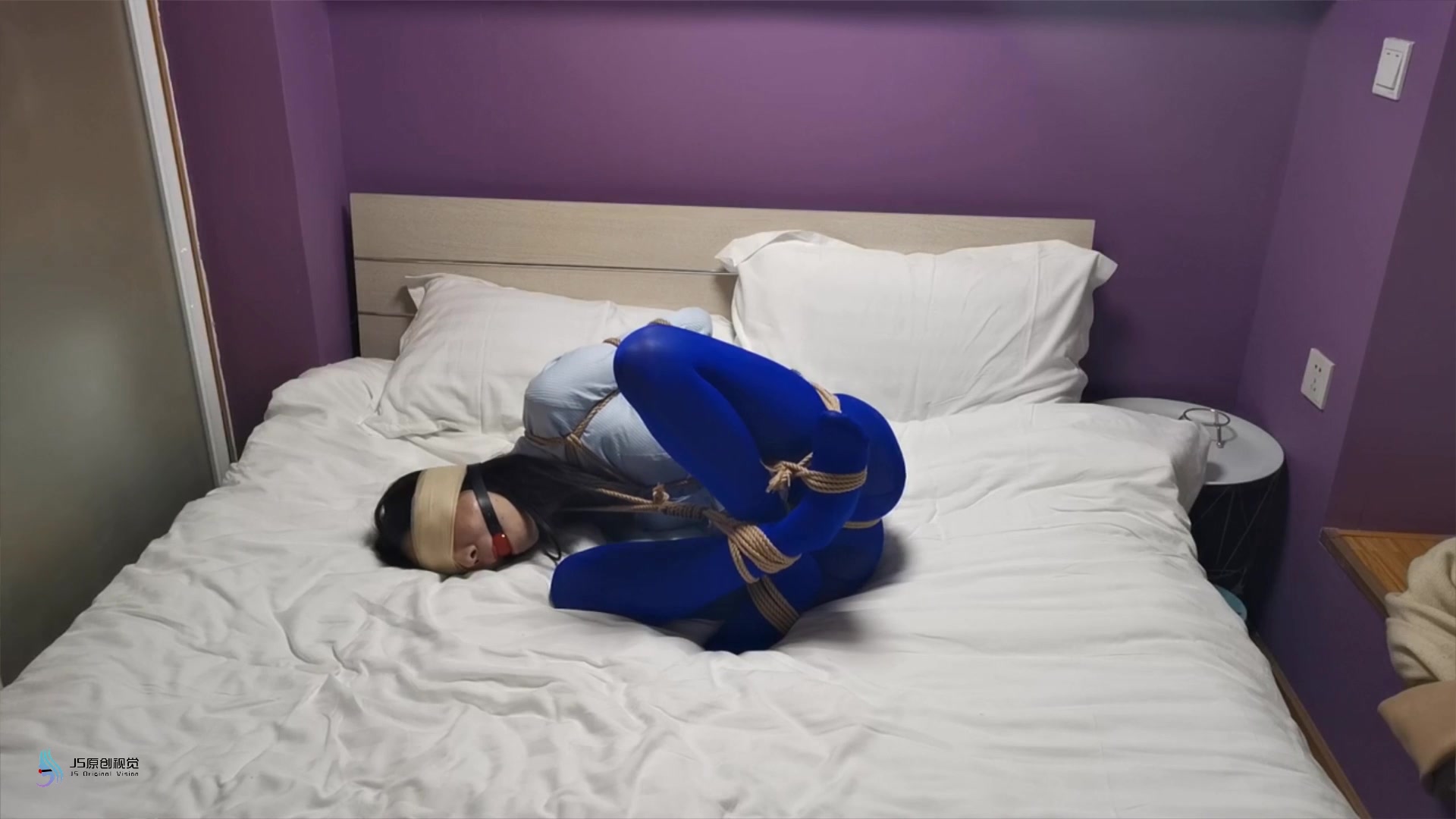 【JS】采文 性感蓝丝+后高手+股绳+团缚+蒙眼+口球堵嘴+ ...