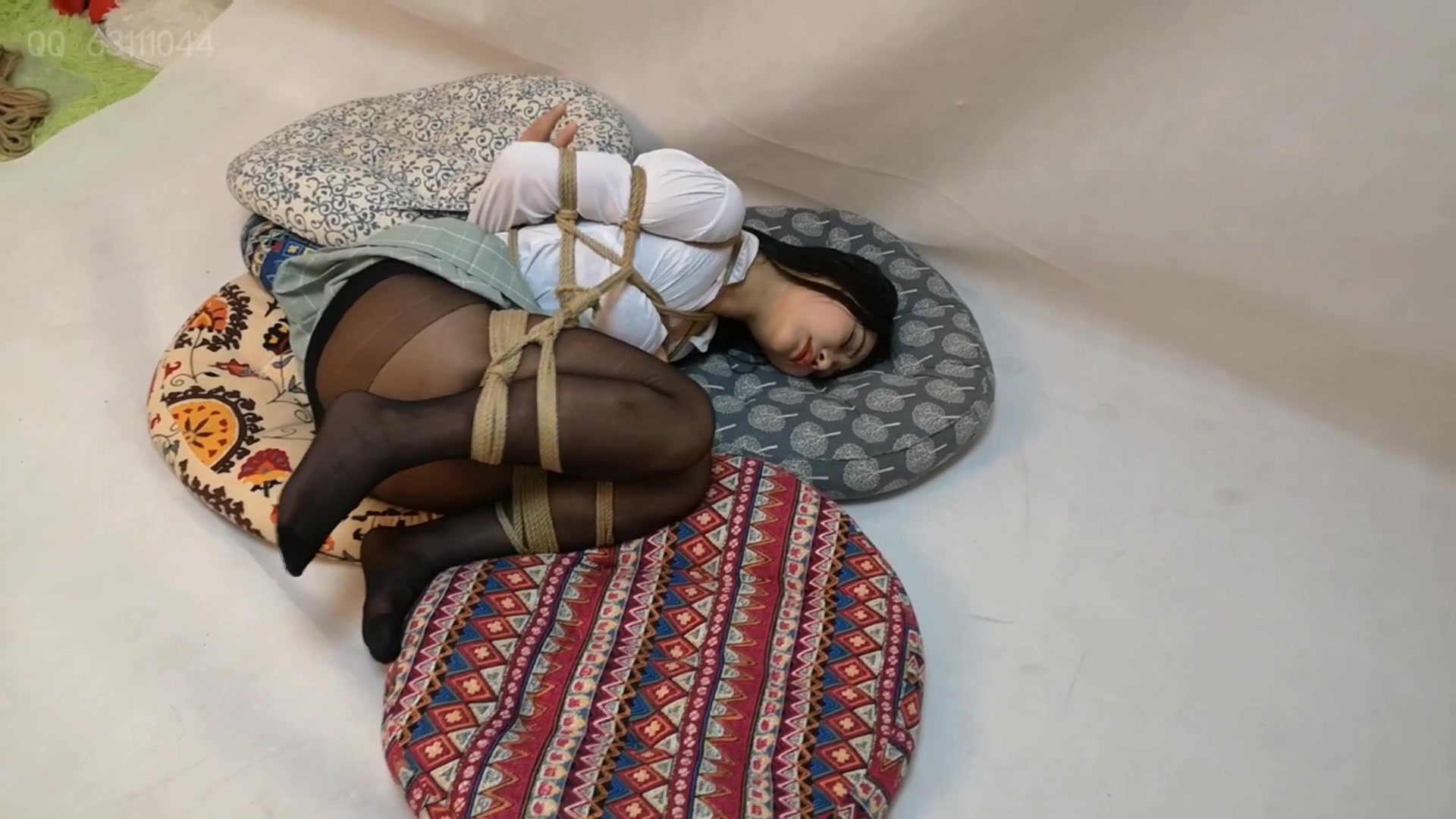 【束缘阁】文慧白衬衣皮裙 柱子全身固定