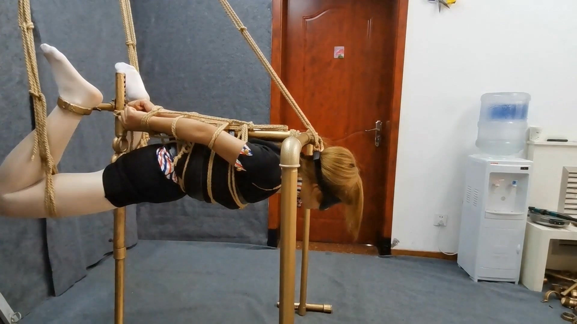 【HD飞天原创】独制悬空驷马K9架,把云儿 用皮带扎紧, ...